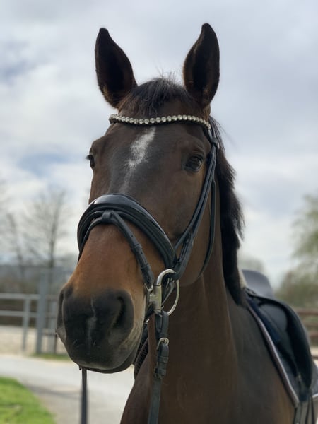 Letty ist eine 12-jährige tschechische Warmblutstute, die durch ihre verschmuste und liebevolle Art sowie ihre unermüdliche Leistungsbereitschaft besticht. Sie möchte immer gefallen, alles richtig machen und täglich Neues lernen. Aufgrund ihres Blutlines ist sie kein Anfängerpferd und benötigt vom Reiter Sicherheit durch Ruhe. Sie vertraut ihrem Partner sehr und würde alles für ihn tun. Im Springen ist sie bis A** siegreich und bis L platziert. Im Training ist sie bis auf M-Niveau ausgebildet. Auch in der Dressur zeigt sie sich sehr talentiert bis in die Mittlere Klasse, wurde jedoch noch nicht auf Turnieren vorgestellt. Trotz ihrer springbetonten Abstammung verfügt sie über drei solide Grundgangarten und ist sehr lektionssicher. Sie lässt sich problemlos verladen, ist brav beim Schmied und beim Tierarzt. Im Gelände, in der Halle und auf dem Platz ist sie brav und auch sehr gerne im Wasser. Da sie nicht das Nervenkostüm für Turniere hat, wird sie nicht als Turnierpferd verkauft. Ich wünsche mir für Letty einen ambitionierten Freizeitreiter, der ein Lehrpferd sucht, einen treuen Partner schätzt und keine Angst vor Galopp hat sowie ruhig mit Unsicherheiten umgehen kann. Bei weiteren Fragen gerne anrufen oder schreiben!