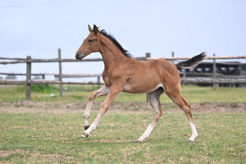 Dieses elegante und gut proportionierte Fohlen stammt aus einem Pedigree, das bewährte Springblutlinien und eine starke Thoroughbred-Leistungsherkunft kombiniert. Ihr Vater, Zambesi TN, ist ein Sohn zweier legendärer Hengste – Heartbreaker und Calvaro Z – die beide dafür bekannt sind, Nachkommen mit außergewöhnlichem Vermögen, Sorgfalt und Reitbarkeit auf den höchsten Ebenen des Springreitens zu produzieren. Zambesi selbst ist dafür bekannt, modernen Typ und exzellente Sprungtechnik weiterzugeben. Auf der Mutterseite hat Petarda erfolgreich im Springreiten bis 130 cm konkurriert und dabei sowohl Talent als auch Konstanz gezeigt. Ihre Mutter (die Großmutter des Fohlens) erzielte bemerkenswerte Ergebnisse im Vielseitigkeitsreiten auf CIC*-Niveau, was die Vielseitigkeit und Ausdauer der Familie unterstreicht. Darüber hinaus umfasst diese Mutterlinie den einflussreichen Thoroughbred Heraldik xx, der bekannt ist für seine Beiträge zu Ausdauer, Athletik und einem wettbewerbsfähigen Vorteil – Eigenschaften, die sowohl im Vielseitigkeitsreiten als auch im Springreiten hoch geschätzt werden. Dieses Fohlen bietet eine einzigartige Mischung aus moderner Sportpferde-Exzellenz und bewährter Leistungshistorie in mehreren Disziplinen, was es zu einer ausgezeichneten Perspektive für den Spitzensport oder die Zucht macht.