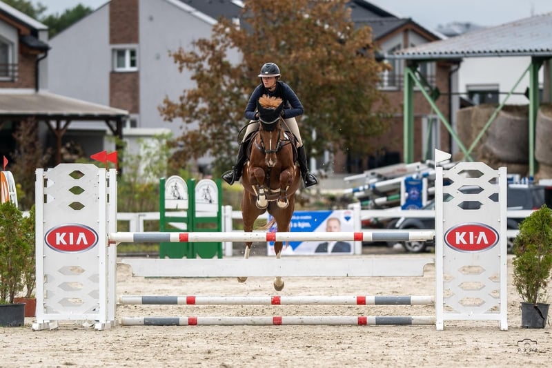 Beautiful & flashy with chrome, 5y old jumper mare by Aristo (Artos x Carthago) out of a Guidam Sohn, careful, not spooky, experienced up to 1.15m, straight forward and willing. Excellent lady/AO/Jr horse.
