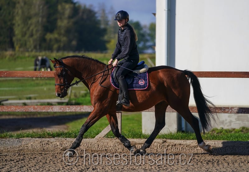 GUMIDEK - horse for hobby riding, allrounder, bargain price Gumidek is a cute gelding for hobby riders, which has not a huge budget. He is fully sound, comes directly from breeder’s hand. Due to lack of time has not done much so far, has been only ridden as a hobby horse. He has very nice movement, so he would suit for dressage ring with some training, he has never jumped under saddle but in freejumping he can show a perfect technique. Gumidek has been ridden by a girl, has snaffle mouth, is being ridden in the trail, would suit for amateur riders, but not for beginners (can be spooky sometimes). Sound (x-rays available), good hooves (running without shoes). NEW Price: 5.500€ More information or videos under +420602862723 https://youtu.be/fxCCVhC_UPo https://youtu.be/CQgLydPXhTk Born: 2015, Height: 165cm, Location: Dard Diamond (Destano) x Carol Location: 45 minutes from Prague, transport can be provided. *** more horses on my website www.horsesforsale.cz ***
