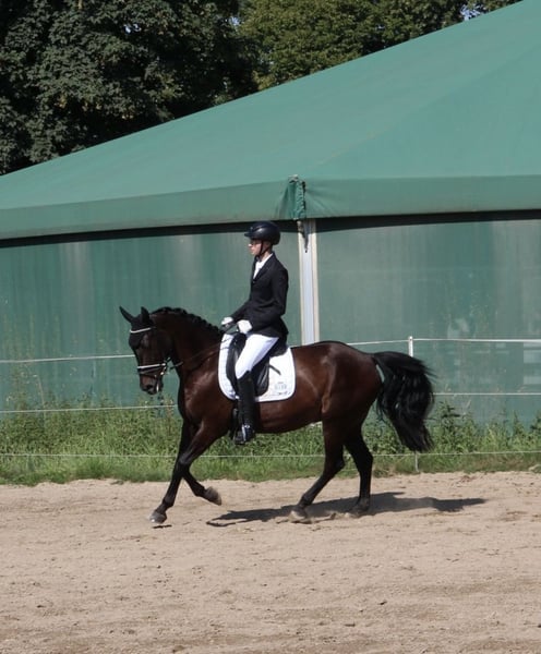 Verkaufe Tschechisches Warmblut – zuverlässiger Dressur-Wallach Zum Verkauf steht ein braver schwarzbrauner Tschechisches Warmblut-Wallach, geboren im Jahr 2012. Mit einem Stockmaß von 154 cm ist er die perfekte Begleitung für Reiterinnen und Reiter die spaß am Freizeitreiten haben und erste Erfahrungen auf dem Tunier sammeln möchten. Dieses kopfklare Pferd überzeugt durch seine soliden Grundgangarten und sein angenehmes Wesen. Es ist bestens für den Freizeit und Tuniereinsteiger bereich geeignet und zeigt sich stets konzentriert und lernwillig. Durch seine ausgeglichene Art ist er sowohl für erfahrene Reiter als auch für fortgeschrittene Reitschüler geeignet. In der Dressur ist er auf A-L niveau und darf aufgrund einer Verletzung die ihn sonst nicht beeinträchtigt nur auf cavaletti höhe Springgymnastik gesprungen werden. Bei Interesse und für weitere Informationen stehe ich gerne zur Verfügung. Besichtigung und Proberitte sind nach Vereinbarung möglich.