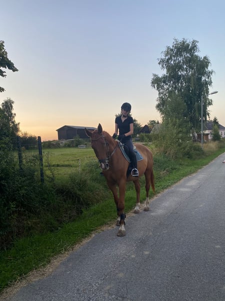 Hello, it is with a heavy heart that I need to find a new home for my gelding Nitro. He needs to be rehomed as soon as possible. He is 15 years old and 16.1 hh tall. He is well-suited for dressage riding and learns new things quickly. He also enjoys hacking, although he prefers not to go alone. He has the most fun doing free jumping exercises with small jumps. Accessories such as saddle, boots, etc., can be included for an additional fee. If interested, please feel free to contact me.