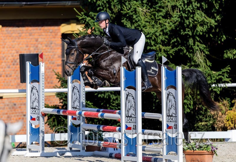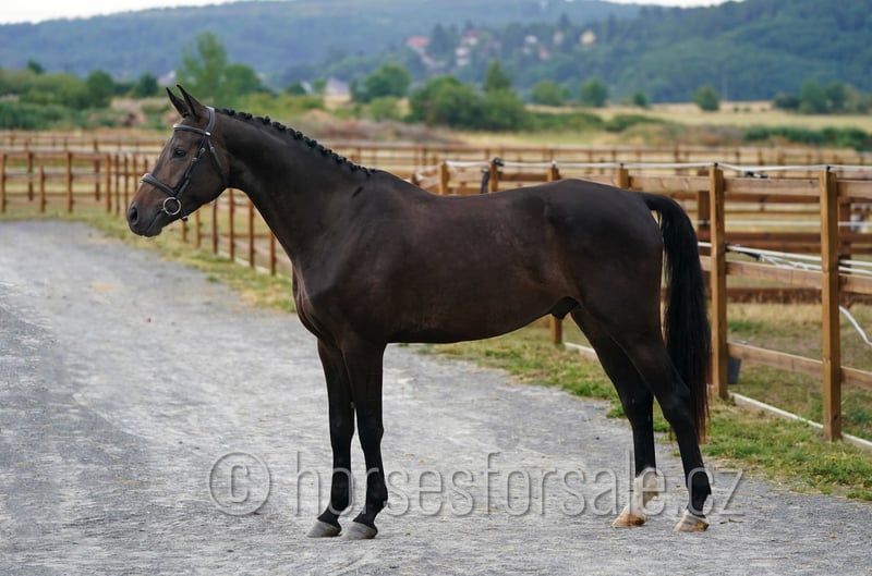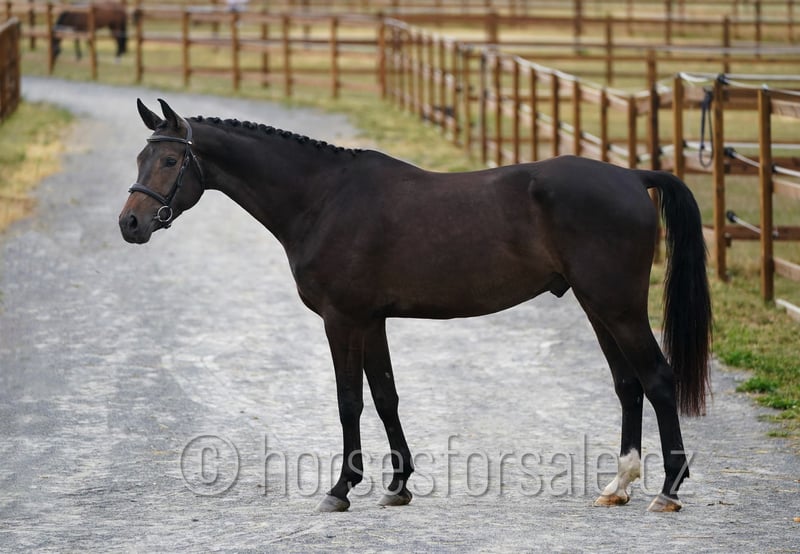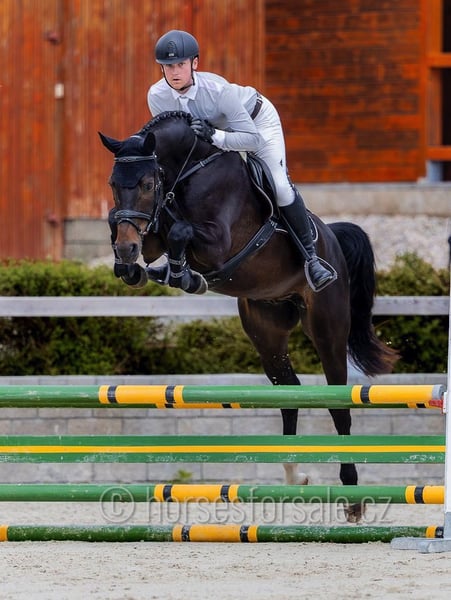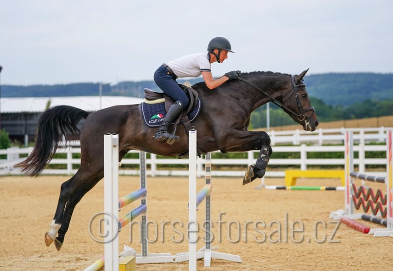 SISCO - eye-catcher for all rings, amazing jump Sisco is a real eye-catcher with flashy jump and outstanding movement. He is competing in show jumping ring on 100/110 level so far, but has enough scope for higher classes in the future, would perfectly suit for equitation ring as well. He is not looky or spooky, has nice lead changes, is not afraid of a bigger jump and behaves on a new place like at home. Easy to handle, travel etc., correct and sound (x-rays available). His mother was successful in parcour up to MT 1.40 with a girl. Price: 30.000€, More information or videos under +420602862723 https://youtu.be/YyRbo6vIcQA https://youtu.be/SPQFfUOKBQQ https://youtu.be/GxFVicIpsEw https://youtu.be/ffH3bY37Uag Born: 2021, Height: 169 cm, Pedigree: Codarco (Cornet Obolensky) x Silvio II Location: 1 hour from Prague, transport can be provided. *** more horses on my website www.horsesforsale.cz **