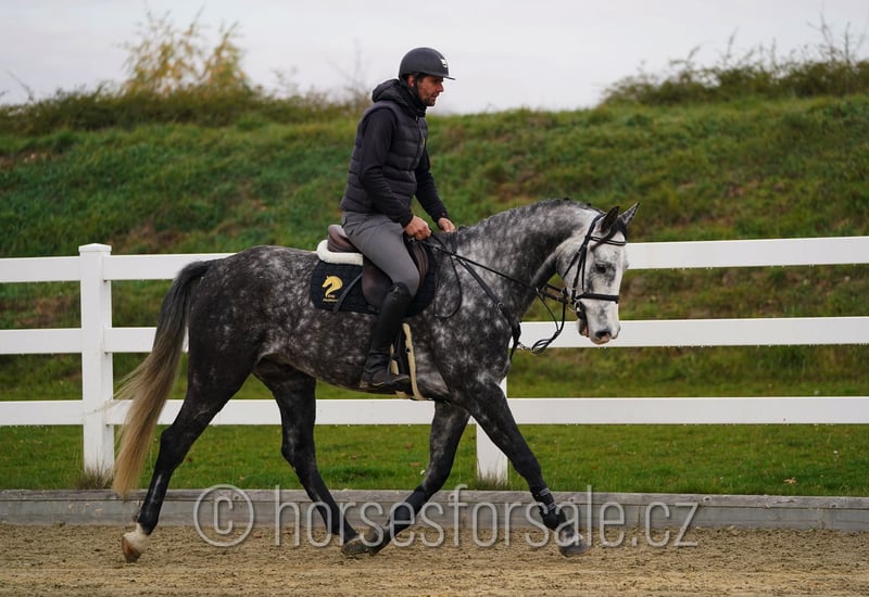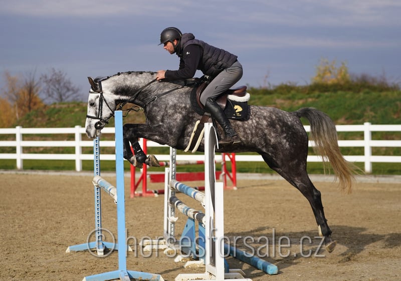 LUCIFER - vielversprechendes Springpferd Lucifer ist ein bildhübsches junges Springpferd mit sehr gutem Sprungablauf. Er ist etwas später ins Training gekommen und hat erst mit 5 seine Grundausbildung absolviert, ist für seinen Turnierdebut bereit. Er läuft schon zu Hause ein kleines Parcour, wobei er tolle Einstellung zeigt, ist motiviert, nicht guckig, weiss immer, wo die obere Stange ist. Eignet sich für einen Reiter, der gewisse Erfahrungen mit Jungpferden hat und sein Potenzial weiterentwickeln kann. RTG-Bilder vorhanden, gesund, korrekt, klar im Kopf, ohne Unarten. Geb.: 2020, Stockmaß: 165cm, Abstammung: Cantesini x Catango Z https://youtu.be/ju0ovHni9L4 Standort: 1 Stunde von Brno, Tschechien, Transport kann organisiert werden. *** weitere Pferde unter www.verkaufspferde.cz ***