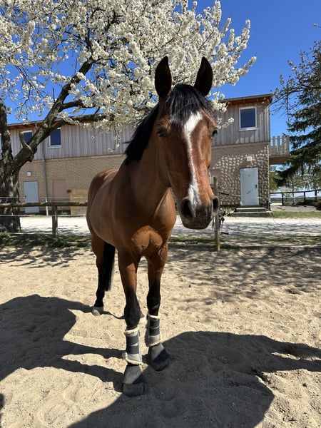 Verkaufe Tschechisches Warmblut – Springwallach, geb. 2018 Zum Verkauf steht ein eleganter brauner Warmblutwallach aus Tschechien, geboren im Jahr 2018. Mit einem Stockmaß von 163 cm vereint er typische Warmblutqualität mit viel Potenzial für den Springsport. Im Training wird er bereits auf L Niveau trainiert. Der Wallach ist gut geritten und zeigt sich im Parcours äußerst talentiert sowie zuverlässig. Seine springtechnischen Fähigkeiten sind vielversprechend, und er verfügt über eine solide Grundausbildung. Seine beeindruckende Erscheinung, kombiniert mit seinem guten Springvermögen, macht ihn zu einem vielversprechenden Kandidaten für den Sport. Der Wallach ist gesund, regelmäßig geimpft und frei von bekannten Krankheiten. Bei Interesse oder für weitere Informationen stehe ich gerne zur Verfügung.