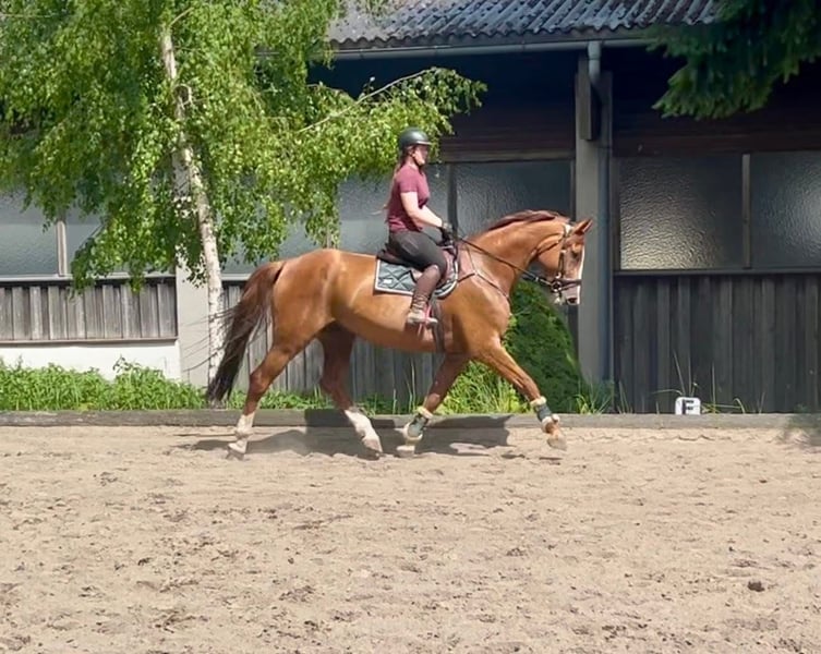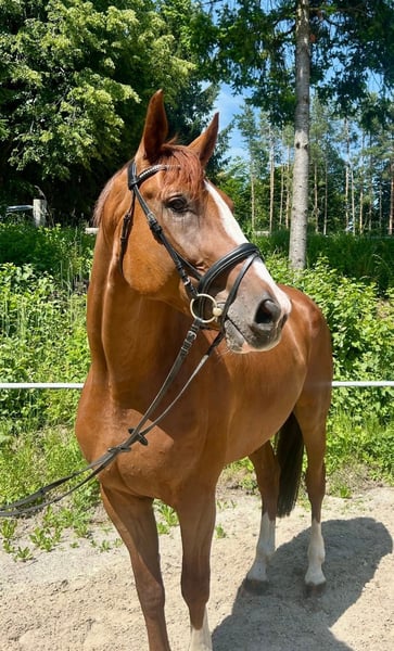 Leon est un magnifique hongre alezan, parfaitement dressé, issu de Leonardo x Dantes x Aloube. Ce cheval d'environ 1,80 m au garrot est très facile à monter et possède un véritable sens du plaisir. Bien que né en 2018 et déjà expérimenté en saut d'obstacles, Leon fait également ses preuves en dressage. En manège, cet alezan est très proche des gens et facile à gérer. Leon est le parfait cheval polyvalent. Le hongre est en excellente condition physique et monte actuellement pieds nus. Pour plus d’informations ou des vidéos, n’hésitez pas à me contacter par WhatsApp ou par téléphone au : 00436603632373. Lieu : Pelmberg 15 / Haute Autriche (OÖ) Visite et essais possibles sur rendez-vous. Le transport du cheval peut être organisé si nécessaire.