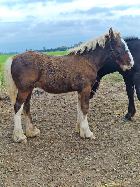 Unique Giants Hustler es un hermoso potro Drum de color bay plateado, que casi parece rojo debido al gen plateado. Está libre de PSSM1 y listo para encontrar un nuevo hogar. Es un caballo muy curioso y fácil de manejar. Puede levantar las patas y ser manejado con correa. Se puede organizar transporte a cualquier parte del mundo. Llevamos 10 años criando caballos Shire y Drum.