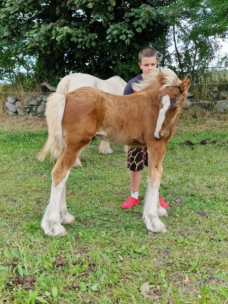 Einzigartiger Giants Hustler ist ein wunderschöner silberbrauner Drum-Wallach, der aufgrund des Silbergens fast rot wirkt. Er ist pssm1-frei getestet und bereit, ein neues Zuhause zu finden. Er ist ein sehr neugieriger und leicht zu handhabender Junghengst. Er kann die Beine heben und wird problemlos an der Leine geführt. Weltweiter Transport kann organisiert werden. Wir züchten seit den letzten 10 Jahren Shire- und Drum-Pferde.