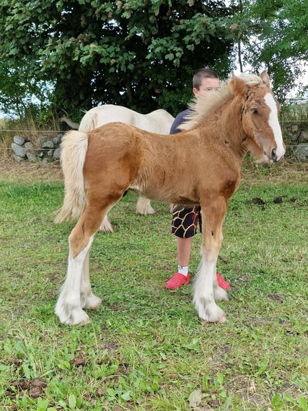 Unique Giants Hustler is a beautiful silver bay Drum colt that is allmost red to look at because of the silver gene. Hes testet pssm1 free and ready to find a new home. Hes a very curious and easy to handle boy. He can lift legs and be handled by leash. Worldwide transportation can be arranged. We have been breeding Shire and Drum horses the last 10 years.