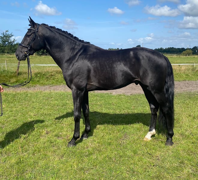 Wir bieten einen herausragenden Dänischen Warmblut Hengst zum Verkauf an. Dieser beeindruckende Rappe wurde im Jahr 2020 geboren und hat ein Stockmaß von 166 cm. Er ist speziell für die Dressur ausgebildet und zeigt großes Potenzial in dieser Disziplin. Dieser Hengst besticht durch seine elegante Erscheinung und seine hervorragenden Bewegungen. Er ist gut ausgebildet und bereit, mit seinem neuen Besitzer weiter in der Dressurwelt zu glänzen. Dazu ist er aktuell Springpferde A platziert und hat auch hier seine außergewöhnliche Rittigkeit unter Beweis gestellt. Weitere Videos https://youtu.be/IUc_R46jp4w?si=o1q_ieZyEuTSkghe Für weitere Informationen und Besichtigungstermine kontaktieren Sie uns bitte.