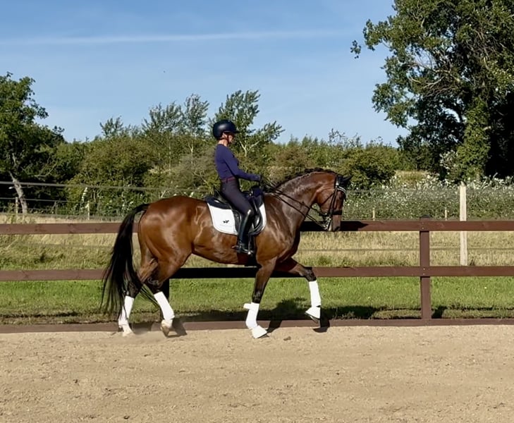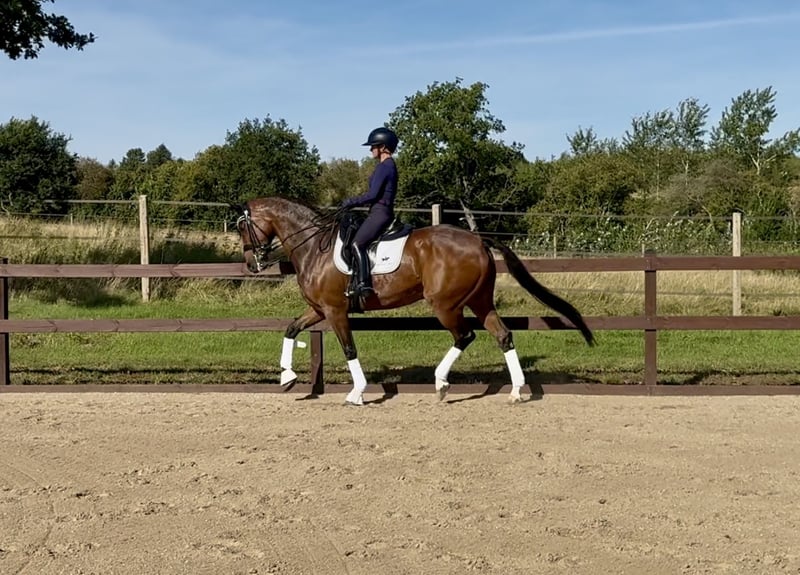 Lord Ballydoyle (BamBam in everyday speech) is a fantastically beautiful and super modern dressage horse. He has 3 gaits, at the very high end of the scale. He comes from a top performance lineage, so here is a horse without limitations. BamBam also has an absolutely fantastic temperament, he is sweet and easygoing in all dealings, and totally on board with the tasks he is given. Goes straight into the transporter/trailer, stands nicely while driving and in the car upon arrival at events. Never looks at events and is sweet on the go. Started up to and including Intermediare II Trains the exercises for the Grand Prix. He is the perfect learning horse if you come from a pony or just want to learn to ride the higher classes. Insignificant remark on the x-ray. Located I Odense, Denmark