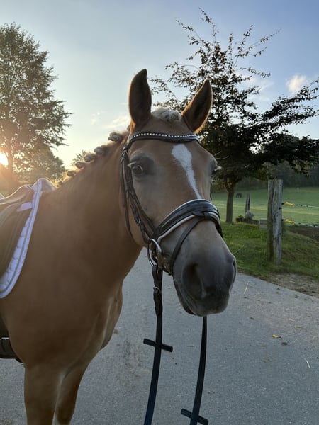 Ich verkaufe hier meine 2016 bei mir geborene Edelbluthaflinger Stute Calita. Sie hat ein Stockmaß von 145cm. Sie ist eine sehr liebenswerte und menschenbezogene Stute, die im Umgang stets brav und unkompliziert ist. Beim Putzen, Hufe geben oder Verladen macht sie immer gut mit. Unter dem Sattel ist sie freizeitmäßig geritten und dressurlich solide ausgebildet. Sie kennt Halle, Platz, Bodenarbeit und geht auch alleine ins Gelände. Für ihren Reiter wünscht sie sich jedoch eine Person mit Erfahrung. Sie ist nicht für Anfänger geeignet. Es gilt Platz vor Preis. Kontakt gerne über WhatsApp
