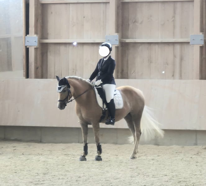 Schweren Herzens suche ich ein neues Zuhause für meine liebe, im Reitponytyp stehende Haflingerstute mit wunderschöner langer Mähne (1,47m). Die Stute ist sehr fein zu reiten und geht leicht durchs Genick. In der Dressur ist sie bis L platziert. Im Training wurde schon mit M-Lektionen begonnen. Sie springt auch gerne und mit schönem Sprungablauf bis A-Höhe. Ausreiten gehen kann man mit ihr sowohl alleine als auch in der Gruppe. Außerdem ist sie sehr gut in Boden-/Freiarbeit und im Gelassenheitstraining bzw. Working Equitation ausgebildet. Sie kann auch von Kindern geritten werden und zeigt sich hierbei sehr vorsichtig. Somit wäre sie auch als Lehrpferd für eine Familie geeignet. Das Zubehör (Dressursattel, Springsattel, Trense, Decken usw.) können gegen einen Aufpreis gerne mitgekauft werden. Bei Interesse gerne melden, ich kann auch gerne weitere Fotos/Videos schicken. Zur Vorbeugung von Reittourismus fällt für Probereiten eine Gebühr von 30 Euro an.