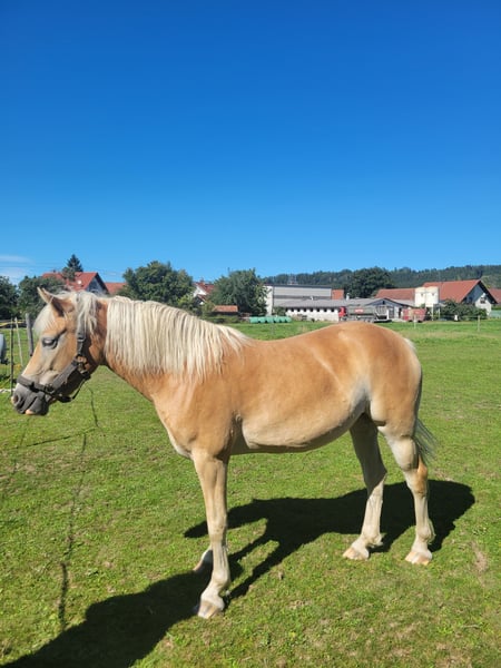 **Verkaufsanzeige: Edelbluthaflinger-Stute (geb. 2022), roh** Zum Verkauf steht eine elegante und vielversprechende Edelbluthaflinger-Stute, geboren im Jahr 2022. Mit einem Stockmaß von ca. 140 cm ist sie perfekt für den Freizeitbereich geeignet und überzeugt durch ihr freundliches Wesen sowie ihre ansprechende Erscheinung. Sie ist mit 8 Monaten zu mir gekommen. Kennt Boxenhaltung und täglichen Koppelgang. Über den Sommer sind sie Tag und Nacht auf der Koppel mit Weidezelt. Diese junge Haflingerstute zeigt sich im Umgang äußerst liebenswert und unkompliziert. Sie besitzt ein harmonisches Fundament, kennt Autos, Traktoren, LKWS und alles was es noch so auf dem Hof gibt. Aufgrund ihres Alters wird sie roh verkauft und kann somit selbst zum zuverlässigen und charmanten Freizeitpferd ausgebildet werden. Bei Interesse oder für weitere Informationen stehe ich gerne zur Verfügung. Die Bilder sind vom letzten Sommer. Aktuell keine Bilder wegen Fellwechsel - können aber auf Wunsch gemacht werden. Eine Besichtigung ist möglich.