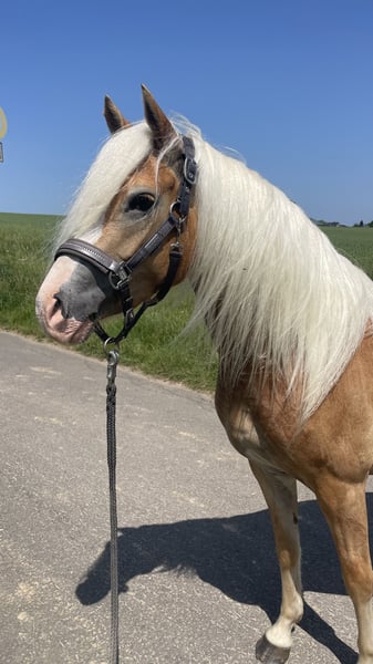 Ich verkaufe schweren Herzens meine 3 jährige Haflingerstute weil sie leider nicht groß genug für mich geworden ist. Sie ist das erste Fohlen aus meiner Melina, mit der ich bis Klasse M unterwegs gewesen bin. Maila ist eine sehr freundliche, menschenbezogene und energiegeladene Stute. Sie will immer alles richtig machen und kennt bereits Sattel, Trense und Longieren. Bisher habe ich sie nicht angeritten, falls gewünscht wäre es aber kein Problem. Sie kennt den Schmied und Anhänger fahren ist auch kein Problem. Ich wünsche mir für sie ein tolles neues Zuhause in dem Sie mit ihrem neuen Reiter viel lernen und Spaß haben kann. Wie ihre Eltern bringt sie Gehfreude, Motivation und Lernwille mit. Besonders für die Dressur, aber auch fürs Springen wird sie sich gut eignen. Sicherlich kein Anfängerpferd aber bei richtiger Förderung ein absolutes Spassmobil!