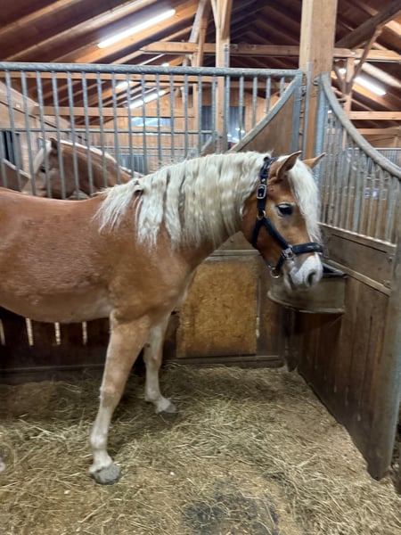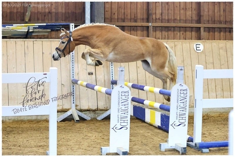 Edelbluthaflingerstute „Cora“ – talentiert, rittig und charakterstark Unsere bezaubernde Edelbluthaflingerstute Cora, geboren am 31.05.2022, sucht ein neues Zuhause, in dem ihr Talent und ihr ausgeglichener Charakter geschätzt und gefördert werden. Cora stammt aus eigener Zucht – sowohl Vater als auch Mutter stehen bei uns im Stall und werden erfolgreich im Sport eingesetzt. Beide Elterntiere überzeugen durch Leistungsbereitschaft, Nervenstärke und Vielseitigkeit – Qualitäten, die sie an Cora weitergegeben haben. Die hübsche Fuchsstute ist bereits geritten, geländesicher und zeigt sich auch in der Dressurarbeit sehr rittig und motiviert. Sie möchte ihrem Reiter stets gefallen und arbeitet zuverlässig mit. Im täglichen Umgang ist Cora eine liebenswerte, charakterstarke Stute, die immer den Kontakt zum Menschen sucht. Ihre Eigenleistungsprüfung in Schwaiganger absolvierte Cora mit großem Erfolg. Dort zeigte sie ihre hervorragenden Anlagen sowohl unter dem Reiter als auch im Freispringen. Cora eignet sich ideal für ambitionierte Freizeitreiter ebenso wie für den Sport oder einfach als Familienpferd das jeden Lieb hat. Ein echtes Allround-Talent mit Herz und Verstand!