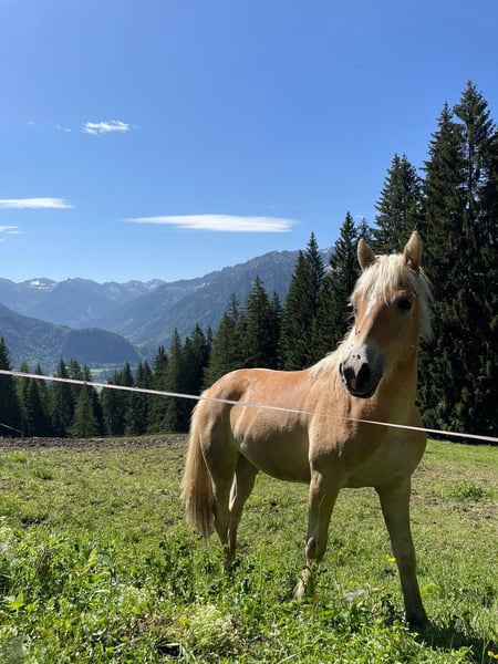 Zum Verkauf steht eine fünfjährige Edelblut-Haflingerstute mit sehr guter Abstammung, klarem Kopf und besonderer Persönlichkeit. Die Stute stammt aus dem Allgäu und wurde direkt vom Züchter erworben. Sie ist in gesunder, naturnaher Haltung aufgewachsen und hat ihre Jungpferdezeit auf einer Allgäuer Alpe verbracht. Diese Aufzucht spiegelt sich in ihrer Robustheit, Trittsicherheit und mentalen Ausgeglichenheit wider. Sie war stets gesund, ist rehefrei, unverbraucht und kennt eine Offenstallhaltung mit 24-Stunden-Heuzugang in Pferdegesellschaft. Charakterlich zeigt sie sich sehr menschenbezogen, intelligent, neugierig und selbstständig. Sie ist aufmerksam, lernwillig und interessiert an neuen Aufgaben, dabei klar im Ausdruck und mit einer angenehmen Präsenz. Die Stute ist mutig, nicht schreckhaft und geht auch allein souverän auf Entdeckung. Sie kennt Kinder, Hunde, landwirtschaftliche Maschinen sowie laute Umgebungsreize und ist im Alltag absolut unkompliziert. Der Ausbildungsstand entspricht ihrem Alter und wurde ruhig und pferdegerecht aufgebaut. Sie kennt Bodenarbeit, Longieren, Spaziergänge, Arbeit als Handpferd im Gelände und zeigt sich dabei kooperativ und zuverlässig. Die Stute lässt sich gut verladen und war bereits mehrfach mit dem Hänger unterwegs, unter anderem zu Kursen, was sie gelassen und souverän gemeistert hat. Die Abstammung vereint Edelblut-Haflingerlinien mit bewährten, bodenständigen Haflingerlinien. Väterlicherseits stammt sie von NICO, einem gekörten Hengst aus der Edelblut-Haflinger-Szene. Auch wenn er nicht im Hauptstutbuch eingetragen ist, ist seine Nachzucht Kennern bekannt und wird für Leistungsbereitschaft, Charakterstärke und Vielseitigkeit geschätzt. Mütterlicherseits geht die Stute auf Kasandra zurück, eine Staatsprämienstute. Kasandra ist eine Tochter von Spezial-Effekt I, einer Linie, die für korrektes Exterieur, solides Fundament und ein ausgeglichenes Wesen steht. In der weiteren Mutterlinie finden sich unter anderem Aquarell und Karin, Linien, die für Gesundheit, Langlebigkeit und Verlässlichkeit bekannt sind. Insgesamt ergibt sich ein harmonisch aufgebautes Pedigree, das nicht auf Extreme, sondern auf Alltagstauglichkeit, Charakter und Vielseitigkeit ausgelegt ist. Diese Stute eignet sich für Menschen, die ein feinfühliges, kluges Pferd suchen, das weiter gefördert werden möchte, ebenso wie für Interessierte mit züchterischem Blick oder für einen späteren Einsatz im erweiterten Freizeit- oder therapeutischen Bereich. Ein Halbbruder aus der väterlichen Linie ist bereits im therapeutischen Einsatz, was auch hier durchaus denkbar ist. Die Abgabe erfolgt ausschließlich in ein bestmögliches Zuhause. Voraussetzung sind Offenstallhaltung oder vergleichbare pferdegerechte Haltungsformen mit Sozialkontakt. Einzel- oder reine Boxenhaltung kommen nicht infrage. Der Verkauf erfolgt nicht aus Zeitmangel, sondern aus persönlichen und gesundheitlichen Gründen und nur dann, wenn wirklich alles passt. Gewünscht wird ein langfristiger Platz, an dem die Stute ankommen darf, gefördert, verstanden und wertgeschätzt wird.