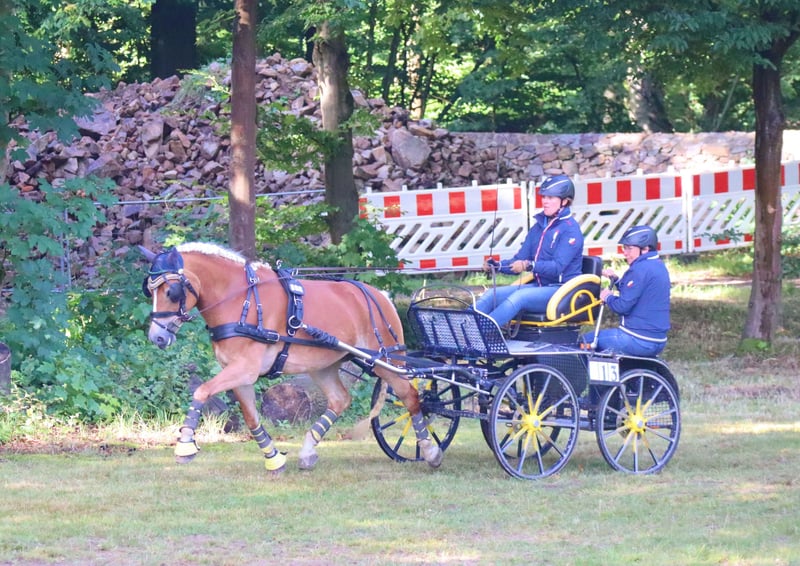 DSP SP Madiva – szlachetna klacz rasy Edelbluthaflinger z doskonałymi wynikami w ujeżdżeniu i zaprzegu, utalentowana w skokach i WKKW Urodzona w 2019 roku klacz DSP SP Madiva to prawdziwa perełka – ambitna, chętna do pracy i już jako młoda koń odniosła sukcesy na poziomie krajowym. Charakteryzuje się wyrazistym, sportowym, nowoczesnym budową ciała oraz jasną perspektywą w wyższych sportach, co czyni ją atrakcyjną zarówno dla ambitnych jeźdźców, jak i do hodowli. Dane podstawowe: • Imię: DSP SP Madiva • Data urodzenia: 07.04.2019 • Rasa: Edelbluthaflinger (z 9,472 % udziałem krwi arabskiej) • Płeć: klacz • PSSM1: n/n (wolna) 🏆 Sukcesy sportowe (wybór): • Liczne zwycięstwa i miejsca w konkursach do poziomu L w ujeżdżeniu • 2024: Niemiecka mistrzyni w zaprzegu koni czterolatków i pięcioletków • 2025: Wicemistrzyni Niemiec w zaprzegu koni pięcio- i sześciolatków Madiva zachwyca nie tylko w parkurze i przed wozem, ale także wykazuje dużą chęć do skoków i WKKW. Jest pełna energii, odważna i szybko się uczy, a jej charakter cechuje wyraźne „go”, jest delikatna w obsłudze, chętna do nauki i bardzo ambitna. Na co dzień w treningu jest zmotywowana, pełna ruchu i ma świetne podejście do pracy. 🌟 Jakość hodowlana: DSP SP Madiva jest wpisana do księgi stadnej i brała udział w finałach na wystawie stadnej w Monachium, gdzie uzyskała prawo do nagrody państwowej. Przeprowadziła próbę użytkowości z oceną końcową 8,25, co czyni ją najlepszą w swojej klasie wśród Edelbluthaflingerów. Z udziałem krwi arabskiej 9,472 % oraz wolnością od PSSM1 (n/n), spełnia najwyższe wymagania nowoczesnej, ukierunkowanej na osiągnięcia hodowli. DSP SP Madiva to wszechstronna, sportowo odnosząca sukcesy i cenną pod względem hodowlanym klacz, która spełni oczekiwania każdego. Niezależnie od dyscypliny – ujeżdżenia, zaprzegu, skoków czy hodowli – posiada wszystko, czego można oczekiwać od nowoczesnego Edelbluthaflingera. Dodatkowe informacje, filmy i terminy prób chętnie udostępnimy na życzenie. Z niecierpliwością czekamy na poważne zapytania i życzymy Madivie domu pełnego serca i perspektyw.