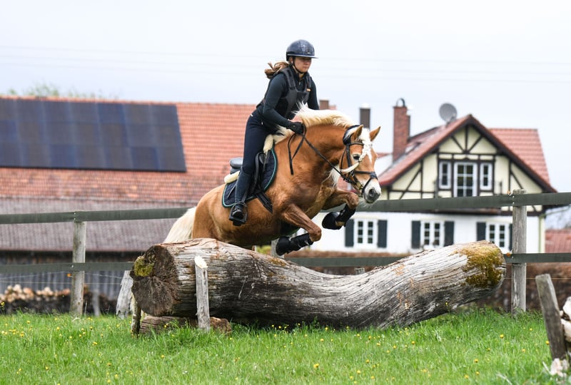 Maleika ist eine typvolle Edelbluthaflingerstute (7,422%) mit sehr gutem Bewegungs- sowie Sprungablauf und herzlichem Charakter. Die Stute überzeugt durch ihre Leistungsbereitschaft, ihren Charme und ihre vielseitige Einsetzbarkeit. Sie ist sowohl für den Sport als auch für den Freizeitbereich interessant und bringt zudem beste Voraussetzungen für die Zucht mit. Im Umgang ist sie brav, menschenbezogen und freut sich über jegliche Aufmerksamkeit. Sie ist ein echter Goldschatz - immer lieb und bemüht, egal ob auf dem Platz, in der Halle oder im Gelände! Maleika ist eingetragen ins Stutbuch I und hat ihre Stutenleistungsprüfung in München-Riem mit der Endnote 8,08 gewonnen. Am Turnier ist sie mehrfach gegen Großpferde Geländepferde E platziert mit Noten bis 8,2 und Geländepferde A gestartet. Außerdem ist sie Springpferde A platziert und Dressurpferde A gelaufen. Sie verdient ein 5-Sterne-Zuhause und wird nur aufgrund von Wegzug der Reiterin verkauft. Weitere Informationen und Videos senden wir gerne auf Anfrage. (Auch per WhatsApp unter 0172-8196797) Probereiten bei ernsthaftem Interesse nach Terminvereinbarung möglich.