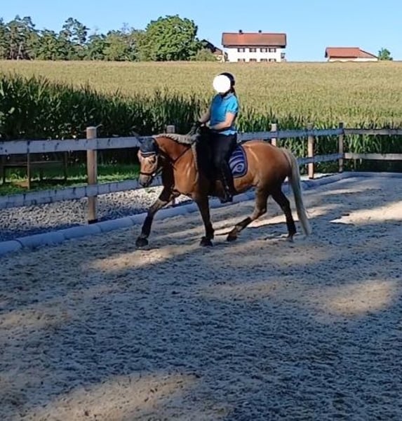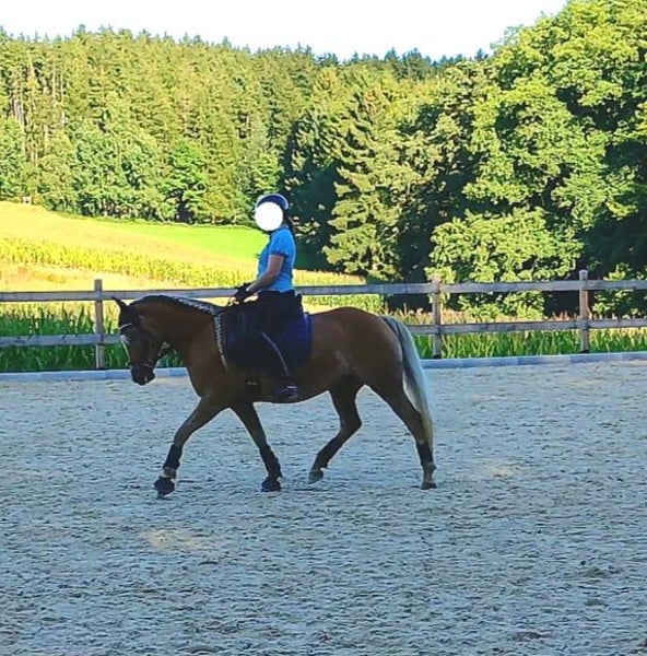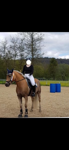 Very rideable, athletic mare (1.47m) for sale to an ambitious leisure rider or competition rider, with placements in A and L dressage. In training, she is already confidently performing individual M-level exercises (traversals, flying changes). In addition to her talent in dressage, she jumps very well and with nice technique (currently up to A-height) and is reliable on trail rides both alone and in a group. Due to her calm demeanor, she is also suitable for working equitation and has already gained experience in this area. She will only be sold to an absolutely 5⭐️ home. Multiple meetings are welcome. Trial rides are charged at 35 euros to prevent riding tourism and will be deducted from the purchase price if bought. Videos can be sent upon request.