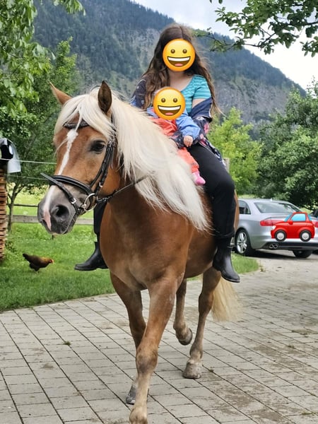 Top Gelegenheiten aus eigener Zucht Zum Verkauf steht einen Edelbluthaflingerstute 6,52% Eingetragen mit 7,85 mit der Höchstnote 10 im Schritt, 8 im Trab, Galopp und Gesamteindruck. Leistungsprüfung 2020 auf Station in München-Riem 8,40 1.Platz 2020 in München-Riem die Bundesprämie erhalten. Hatte 3 Fohlen und wurde fleißig im Freizeitbereich geritten. Leonhardi, kleinere Wanderritte....... Auf sie ist immer Verlass ob auf der Straße, Wiese oder mit Kindern. Sie wurde nicht gefahren.