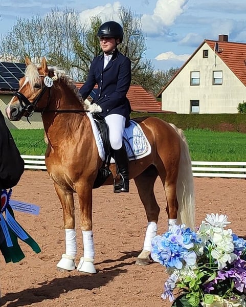 Elite- und Bundesprämienhengst Salvator SCH – Vielseitiger Edelbluthaflinger mit Top-Erfolgen in Sport & Zucht Zum Verkauf steht der außergewöhnliche Edelbluthaflingerhengst Salvator SCH, geboren am 26.05.2012, mit einem eleganten Stockmaß von 145 cm und einem auffälligen Fuchsfarbton. Mit einem Araberblutanteil von 5,273 % und PSSM1-Freiheit (n/n) verbindet er edle Abstammung mit bester Gesundheit. Züchterische Highlights: 2012: Siegerfohlen bei der regionalen Fohlenprämierung in Cottenbach 2012: Erfolgreiche Teilnahme am Süddeutschen Haflinger- und Edelbluthaflingerfohlenchampionat in München 2014: Süddeutscher Haflinger- und Edelbluthaflingerkörung in München – süddeutsch gekört 2016: Klassenreservesieger beim Zentralen Landwirtschaftsfest München 2016: Sieger Hengstleistungsprüfung Warendorf mit 8,36 2019: Bundesreservesieger Fahren und Verleihung der Bundesprämie Zucht bei der Bundeshengstschau München 2022: Verleihung des Titels „Elitehengst“ – erster Fränkisch gezogener Haflinger-/Edelbluthaflingerhengst mit diesem Titel 2023: Verleihung des Sportpräfix DSP aufgrund seiner herausragenden Eigenleistung Sportliche Erfolge: Deutscher Fahrponychampion der 6- und 7-jährigen Fahrponys Zahlreiche Siege und Platzierungen bis L**-Dressur (Kandare) Erfolge im Springen und in der Vielseitigkeit Charakter & Umgang: Salvator ist ein absolut braver, zuverlässiger Partner – sowohl im Umgang als auch unter dem Sattel. Er genießt es sehr, geputzt und betüttelt zu werden, zeigt sich dabei sehr liebevoll und menschenbezogen. Sein angenehmes Wesen macht ihn zu einem tollen Freizeit- und Sportpferd, mit dem man auch im Gelände entspannt die Seele baumeln lassen kann. Besonderer Hinweis: Salvator SCH wird ausschließlich in ein liebevolles 5-Sterne-Zuhause abgegeben, in dem der Spaß und die Freude im Umgang mit ihm im Vordergrund stehen – nicht der reine sportliche Ehrgeiz. Salvator SCH ist ein Hengst mit herausragendem Potenzial für Zucht und Sport, der sowohl durch seine Erfolge als auch durch seinen Charakter überzeugt. Nutzen Sie die Chance, einen Elitehengst mit vielseitigen Talenten und tollem Temperament in Ihr Team zu holen! Für weitere Informationen, Bilder oder Videos stehen wir Ihnen jederzeit gerne zur Verfügung.