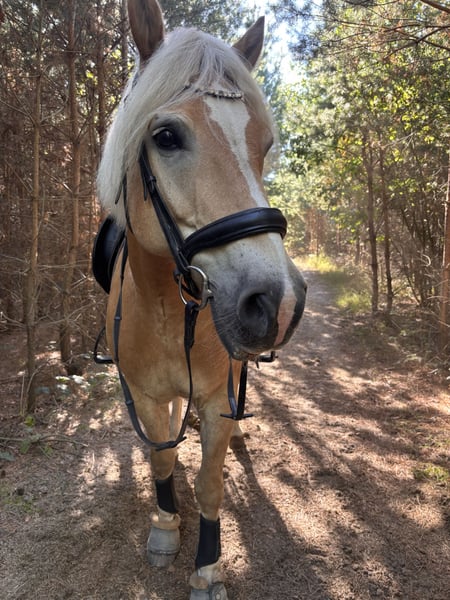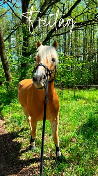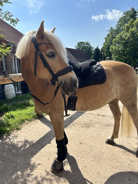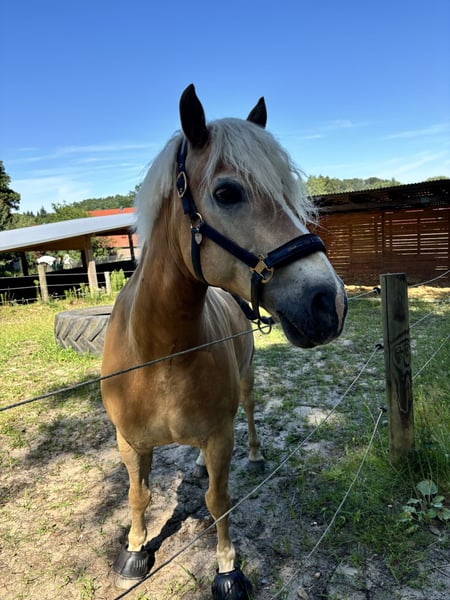 Freizeitgerittener 14 Jähriger Edelblut Haflinger, ca 155cm Stockmaß Sucht nachweislich neues 5* zuhause auf Lebenszeit. Der Wallach besticht mit seinem Charme im Umgang, ist sehr Menschenbezogen und freundlich gegenüber Artgenossen. Er steht aktuell in einer gemischten Herde im Offenstall : im Sommer 24/7 Weidegang und im Winter Sandpaddock mit Heu satt - dabei immer Zaunsicher, kennt aber auch Box. Er ist auf solidem A Niveau im Freizeitbereich geritten wurde eher Dressurmäßig gearbeitet, hat aber aber auch sehr viel Spaß an gymnastizierender Stangenarbeit und kleinen Sprüngen. Er geht allein und in der Gruppe ins Gelände und ist dabei auch sehr brav und verlässlich, möchte immer vorne weg und ist sehr mutig . Sein Alter merkt man ihm nicht an, daher ist er nicht für Anfänger oder unsichere Reiter geeignet, da er sehr gern seinen Ponykopf durchsetzen möchte. Aktuell ist er 4x beschlagen, dazu mehr bei ernsthaftem Interesse. Für weitere Infos und Rückfragen stehe ich gern zur Verfügung. Videos können versendet werden.