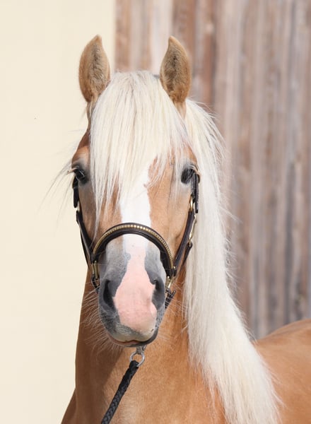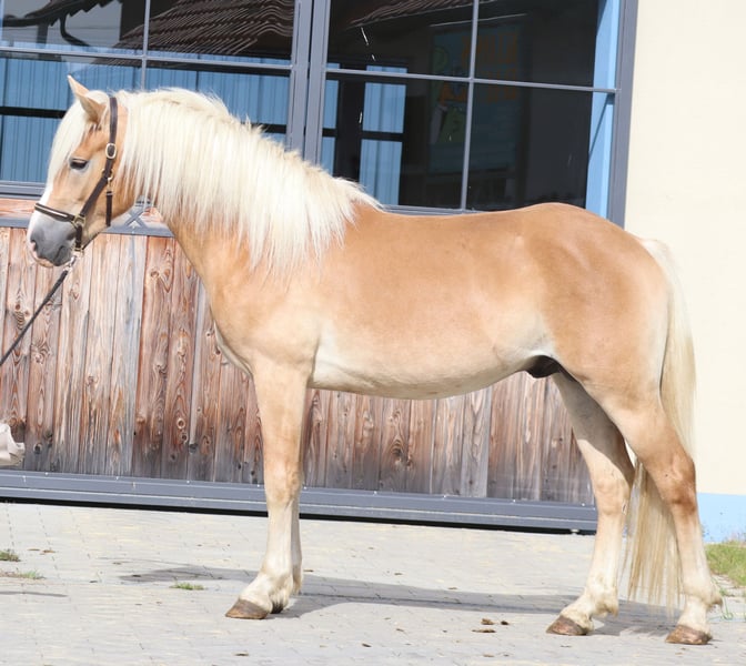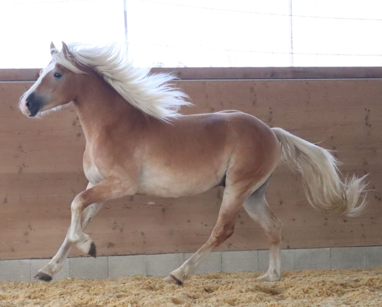 Bruce – Young Edelbluthaflinger Gelding with Excellent Pedigree & Promising Future Born on April 16, 2023, Bruce presents as a well-mannered, typy Edelbluthaflinger gelding standing approximately 147 cm at the moment. He has been raised appropriately in a herd environment and enjoys summers on spacious pastures as well as winters with his friends in a box stall with all-day turnout – ideal conditions for healthy and balanced development. 🧹 Handling & Basic Training Bruce is familiar with and confidently masters all foal basics: grooming, washing, leading, tying, and hoof handling are performed calmly and reliably. He impresses with his calm and pleasant demeanor in daily handling. 🧬 Outstanding Pedigree Sire: LH Barion – Reserve Champion Stallion at the South German licensing 2021 – Reserve winner of the stallion performance test with a score of 8.46 – Produces numerous champion foals Dam: SP Gabi (by Amaryl out of Greti by Aggenstein) Full sister: – Outstanding winner of Edelbluthaflinger mare class at the regional foal championship This exceptional lineage and family success story give Bruce an excellent foundation and great sporting potential. ⚡ Special Features Bruce can be delivered to his new home upon request and at the buyer’s expense. 🎯 Prospect Bruce is ideally suited for breeders and ambitious leisure or young riders who value a healthy, well-socialized young horse with an excellent character and noble pedigree.