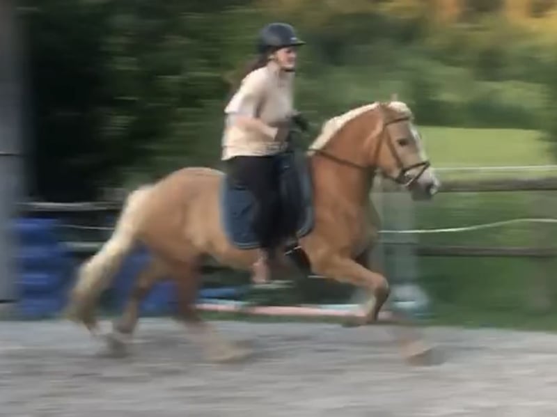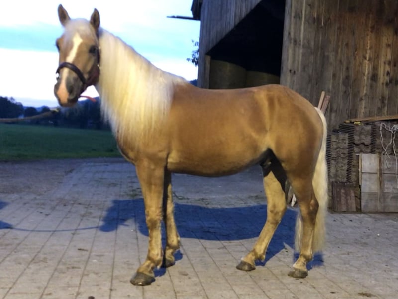 Bald vierjähriger Edelbluthaflingerwallach (8,21%) vom schweren Schlag. Sein Stockmass ist momentan 148cm, laut Zigeunermaß soll er noch 9 cm wachsen. Er ist longiert, kennt Freispringen und ist angeritten. Er hat Go und ist altersbedingt noch nicht für Anfänger und Kinder geeignet. Die Grundbasis stimmt jetzt braucht er den richtigen Freizeitpartner, der aus ihm ein kleines Juwel macht. Er ist geimpft, Wolfszähne sind gezogen und die anderen Zähne kontrolliert. Kastriert wurde er mit 2,5 Jahren. Ist mit Kühen, Stuten mit Fohlen zwei Stunden auf den Weide. Bei Interesse gerne melden.