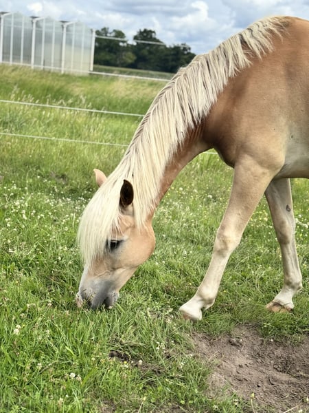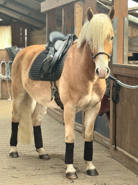 Edelbluthaflinger Wallach, mit Ox-Anteil 29.500 %, zu verkaufen Zum Verkauf steht ANTON, ein bildschöner Wallach, geboren 2020. Anton überzeugt nicht nur durch seine außergewöhnliche Erscheinung, sondern vor allem durch seinen tollen Charakter. Er ist ein Pferd, das jeden Tag Freude macht. Im Umgang wie auch unter dem Sattel zeigt er sich absolut verlässlich und unkompliziert. Einen typischen „Haflinger-Dickkopf“ sucht man bei ihm vergeblich. Er hat keine Unarten und versteht sich mit anderen Pferden sehr gut, ganz gleich ob Stute oder Wallach. Anton ist ein angenehmes und wertvolles Herdenmitglied. Doch nicht nur sein Wesen spricht für ihn, sondern auch seine Rittigkeit. Er verfügt über drei gute Grundgangarten und das angenehme Maß an Go, das man sich bei der täglichen Arbeit wünscht. Dabei ist er fein an den Hilfen und setzt neue Anforderungen schnell und willig um. Anton braucht einen Reiter mit Gefühl und Erfahrung, der ihm feine Hilfen geben kann. Aufgrund seiner Sensibilität und seiner feinen Art ist er kein Kinder oder Anfängerpferd. Er ist sowohl für turnierambitionierte Reiter als auch für ambitionierte Freizeitreiter interessant. Anfragen und Terminvereinbarung unter 01784 302448