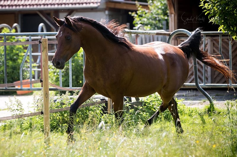 AS RANIA hat eine sehr einfühlsame und gleichzeitig sehr starke Persönlichkeit. Sie ist ein Ausnahmepferd und ihre Güte spiegelt sich in ihren klaren, großen Augen wieder. Sie ist sehr fein und doch enorm kraftvoll in ihren Bewegungen. Ihre Erscheinung ist typvoll und sehr harmonisch. Die Grundgangarten sind beeindruckend und sehr raumgreifend. Dieses gibt sie auch an ihre Nachkommen weiter. Vom ZSAA e.V. wurde sie 2015 als Prämienfohlen mit zwei Sternen dekoriert und zuletzt mit der Verbandsprämie ausgezeichnet. Züchterisch sehr wertvoll!