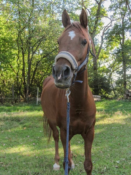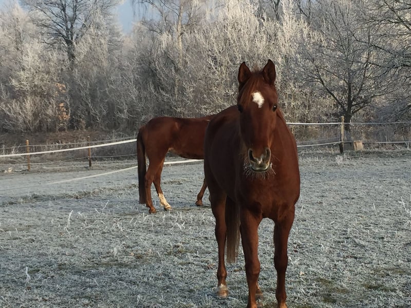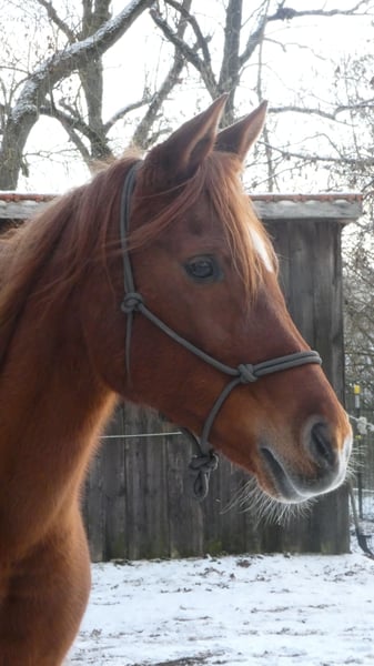 Shanna hat eine nicht heilbare Verletzung im ISG. Sie hat nicht sichtbar Schmerzen geht aber sehr verspannt und ist fremden Menschen gegenüber sehr misstrauisch. In der Herde ist sie sehr dominant. Longieren, Bodenarbeit und auch kleine künststücke macht sie sehr gerne.