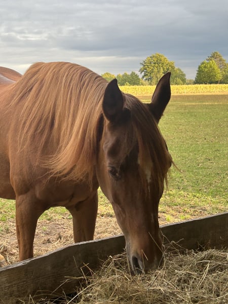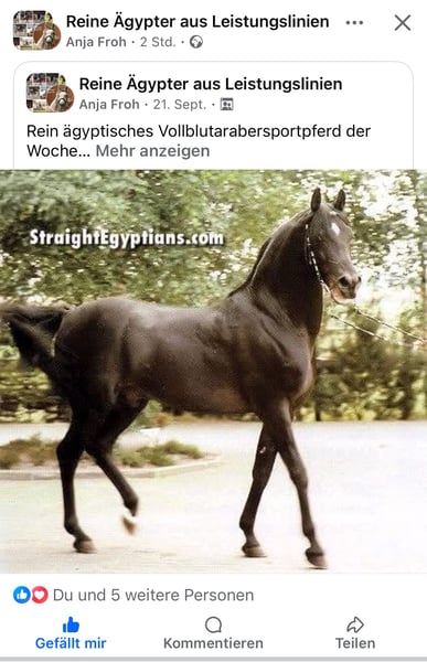 El Gamad Saraje ist eine wunderschöne im originalen alten Weil Marbacher Wüstentyp stehend! Da ich leider derzeit keine Möglichkeit habe mit ihr weiter zu züchten, wäre es eine Sünde dieses Blut mit dem tollen Potenzial was diese zauberhafte Stute in sich trägt brach liegen zu lassen. Reiterlich ist sie butterweich zu reiten mit dem wunderschönen Go was wir Arabermenschen lieben. Trittsicher und cool geht sie mit ihrem Menschen überall hin. Als Mama verteidigt sie ihre Fohlen ohne übertrieben zu sein. Ihr Exterieur und Interieur suchen in der heutigen Zeit ihresgleichen. Ihren sanften und coolen Charakter mit allem was es braucht, gibt sie an ihre Kinder weiter. Bei der Wahl des richtigen Hengstes kann ich gerne behilflich sein! Ich bin Züchterin aus tiefstem Herzen und deshalb möchte ich einen absoluten Traumplatz! Weitere Infos gerne nach Kontaktaufnahme! Auf den Fotos sieht wir den wunderschönen Schimmel Hadban Enzahi, den Rappen Gharib und den Rappen El Aswad .