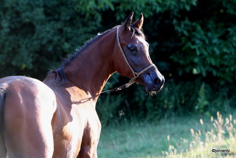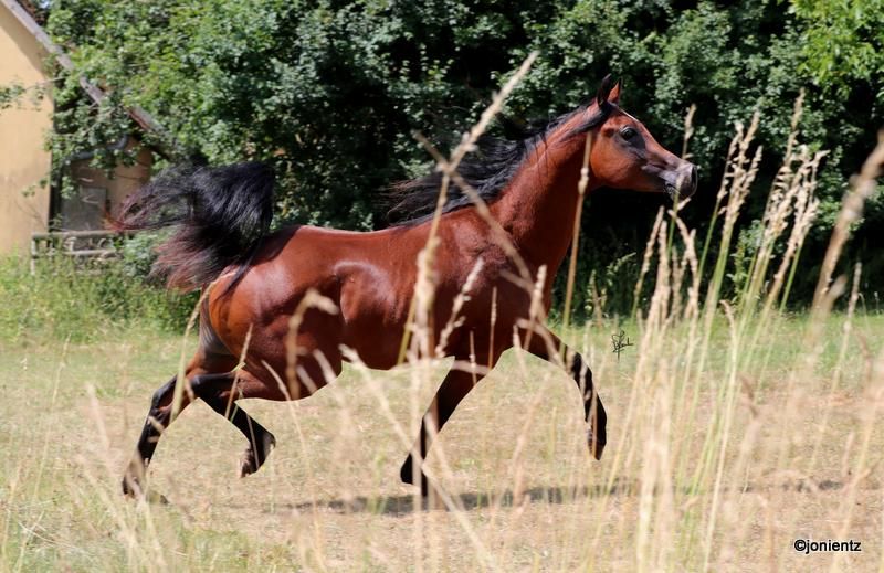 Talal El Mujid è un bellissimo puledro egiziano baio di prima classe con linee di sangue molto interessanti. Riunisce le caratteristiche tipiche di questa nobile razza: intelligenza, grazia e un carattere dolce. Ha una super struttura corporea e un ottimo fondamento, oltre a movimenti eccezionali, ed è adatto sia per la riproduzione che per il tempo libero. Talal è molto affascinante, ben socializzato, vive in un grande gruppo e si mostra gentile e amichevole nel maneggio. È già abituato al capestro e all'addestramento al guinzaglio e mostra un grande potenziale per ulteriori addestramenti. Se siete interessati, saremo felici di ricevere il vostro contatto per condividere ulteriori informazioni e fissare un appuntamento per la visita. www.goschenhof-arabians.de