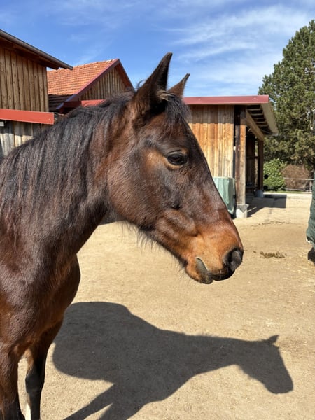 ZUR VERFÜGUNG, nicht zum Verkauf Wunderschöne und super tolle Stute sucht ein neues Zuhause. Meine Stute Josy, 15 Jahre alt, 150cm Stockmaß, sucht ein neues Zuhause mit neuem Wirkungskreis, in dem sie von ganzem Herzen geliebt wird und weiterhin ihrem Ausbildungsstand entsprechend gefördert wird. Josy ist eine total liebe Kleinpferd-Stute, die jedem gefallen möchte. Da sie ein irisches Halbblut ist und dementsprechend auch Vollblutanteile hat, hat sie ein entsprechendes Go und Tempo, ist dabei aber zu jeder Zeit, egal ob mit oder ohne Gebiss, super händelbar und wird auch nie kopflos oder so. Ihre Große Leidenschaft ist das Ausreiten, aber auch Bodenarbeit, Handarbeit, Spazieren, Longieren, Dressur oder ab und zu mal über ein Hindernis hüpfen macht ihr große Freude. Auch ganz junge und kleine Kinder durften auf ihrem Rücken schon Platz nehmen und dabei agiert sie mit größter Vorsicht, um ihrem kleinen Freund auf ihrem Rücken ja nicht zu schaden. Sie wäre daher bestimmt auch ein super Familienpony. Da ich sie mit einer Trageerschöpfung übernommen habe und sie die Jahre zuvor auch fast ausschließlich im Gelände geritten wurde, ist sie in der Dressur noch eher am Anfang und bedarf noch einer fördernden Hand. Ihr macht es aber großen Spaß und wenn man mit einer ruhigen Art mit ihr arbeitet lernt sie super schnell dazu. Wir haben auch schon mehrere Tages- und Wanderritte mit ihr gemacht und das macht ihr am aller meisten Spaß. Sie geht sowohl alleine als auch mit anderen Pferden in der Gruppe an jeder Position ins Gelände und meistert Autos, Traktoren, LKW´s, Brücken, Tunnel, Unterführungen, Städte, Dörfer, Gewässer, andere Tiere und Co mit Bravour und ist dabei total unerschrocken. Sie kennt auch das Ausreiten mit Handpferd sowie das mitlaufen als Handpferd bei einem anderen Pferd. Da Josy total brav in den Hänger geht und auch grundsätzlich eher unerschrocken ist, wären kleinere Turniere mit ihr sicher machbar, sie hat bislang allerdings noch keine Turniererfahrung und ich glaube auch nicht, dass sie aufgrund ihres aktuellen Ausbildungsstandes super geeignet wäre für Turniere. Für ihr neues Zuhause ist mir vor allem wichtig, dass sie in einem Offenstall mit anderen Pferden zusammen gehalten wird und nicht in einer Box stehen muss. Zudem ist mir wichtig, dass mit dem Pferd abwechslungsreich gearbeitet wird und es einem nicht nur um Reiten geht, sondern das Pferd als Partner und Freund angesehen wird und nicht als Sportgerät. Sie muss im Winter bzw. bei Regen und/oder Kälte eingedeckt werden, das sie sonst schnell verspannte Muskeln hat. Sonst hat sie keinerlei gesundheitliche Probleme und ist top fit. Aktuell läuft sie Barhuf und kommt damit auch hervorragend klar. Für die Wanderritte hatte sie Hufschuhe drauf, für normale Ausritte oder Tagestouren braucht sie aber nicht die. Da ich sie nicht verkaufen möchte, sondern zunächst einmal zur Verfügung stellen würde, wäre es mir lieb, wenn sie im Umkreis von Bayern bleiben würde. Das ist aber keine Grundvorraussetzung. Wenn alles passt, würde es auch die Möglichkeit zu einer Kaufoption geben. Bei weiteren Fragen gerne jederzeit Melden.