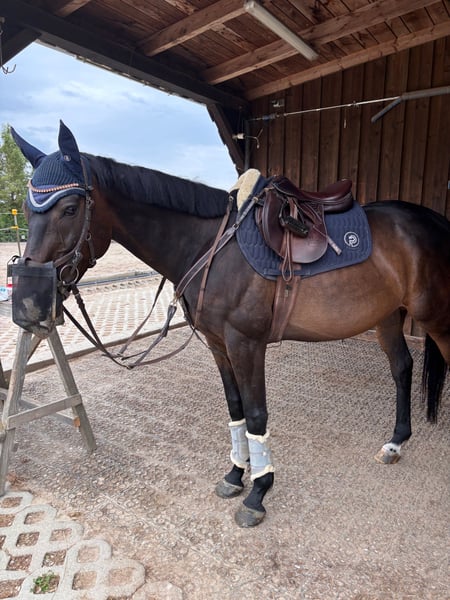 Schweren Herzens müssen wir (Mutter und Tochter) uns leider von unserem liebgewonnen Freizeitpferd Rocky trennen. Rocky (genauer Sicilian Rock) ist ein Irish Vollblut Wallach im Alter von 10 ¾ Jahren. Aufgrund seines guten Charakters hat er uns stets zuverlässig und brav begleitet. Er ist ein echter Schatz im Umgang, stets freundlich und menschenbezogen. Unter dem Sattel zeigt sich Rocky ausgeglichen, nervenstark und ehrlich. Egal ob auf dem Reitplatz, in der Halle oder im Gelände. Längere Ausritte machen ihm, allein wie in der Gruppe, viel Freude. Äußere Einflüsse, wie PKWs, LKWs oder auch Traktoren bringen ihn nicht aus der Ruhe. Rocky hat auch Potential zum Springen, benötigt hier aber den Rückhalt eines kundigen Springreiters, den wir ihm leider nicht entsprechend bieten können. Gesundheitlich ist Rocky top, regelmäßig beim Hufschmied, Tier- und Zahnarzt. Sämtliche Impfungen können nachgewiesen werden. Rocky ist auch hier problemlos im Handling. Aufgrund geänderter Lebensumstände wünschen wir uns für Rocky ein liebevolles Zuhause bei einem/r Freizeitreiter/in, der/die Spaß am Freizeitreiten und einer harmonischen Partnerschaft hat. Unsere Preisvorstellung liegt im Bereich von 5400€, wobei für uns der Grundsatz „Platz vor Preis“ gilt. Bei Interesse kontaktieren Sie mich bitte unter der Telefonnummer 0160-99175796. Videos nach Kontaktaufnahme möglich.