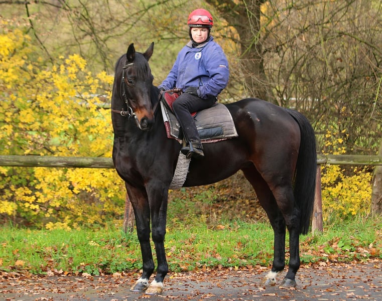 The 8-year-old gelding was purchased in Ireland in November. During his active racing career, he competed sparingly but showed good performances, including winning two hurdle races. 🏇🏼🥇 He was bought as an interesting candidate for activities such as autumn foxhunting or for riders with jumping ambitions. 🌳🐎 He stands approximately 16.3 hh and, like most Irish thoroughbreds, has a rather tall and refined build. Hills Of Glory impresses with his calm and friendly nature; he is very affectionate and social when interacting with other horses and people. 💚 He is fully vaccinated, shoe- and loading-trainable. 🚛 For further questions, feel free to send us a message here or contact us at +49 171 5425050. 📥📞 More information can be found at www.rennstall-recke.de He can be viewed and test ridden by appointment in Weilerswist (30 km south of Cologne).