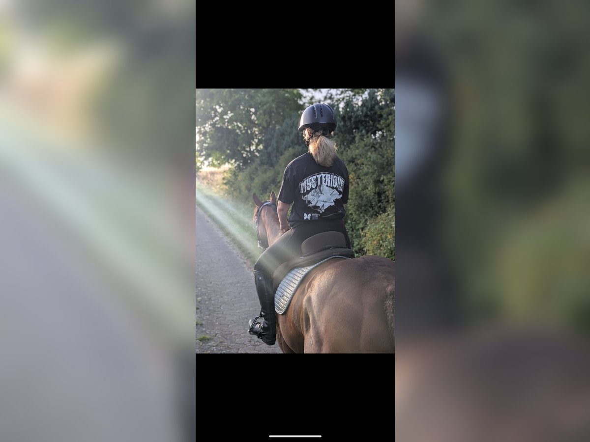 Irisches Sportpferd – zuverlässiger Freizeitpartner mit starkem Geländecharakter Zum Verkauf steht ein 8-jähriges irisches Sportpferd mit einem Stockmaß von ca. 165 cm. Dieses menschenbezogene Pferd überzeugt besonders durch seine Gelassenheit und Verlässlichkeit im Gelände. Er ist herdenverträglich und sowohl geritten als auch als Handpferd problemlos im Gelände unterwegs. Auch längere Wanderritte bis zu 50 km sind bekannt und werden sicher gemeistert. Ungewöhnliche Situationen sind für dieses Pferd kein Problem – selbst ein Besuch im McDrive wurde souverän gemeistert. Straßenverkehr, Wasser sowie Begegnungen mit Hunden, Schafen und anderen Tieren stellen keinerlei Schwierigkeit dar. Aktuell steht das Pferd im Offenstall und ist im Sommer 24/7 auf der Wiese. Boxenhaltung ist ebenfalls bekannt, sodass er sich flexibel an verschiedene Haltungsformen anpassen kann. In der Halle ist das Pferd noch unerfahren und benötigt hier weitere Förderung. Beim Verladen zeigt sich aktuell noch Unsicherheit, weshalb ein geduldiger Umgang wichtig ist. Das Pferd ist vorne beschlagen und läuft hinten barhuf. Eine gute Abstammung ist ebenfalls vorhanden. Aufgrund seines Ausbildungsstandes wird ein sicherer, erfahrener Reiter gesucht, der ihm die nötige Führung geben kann. Der Abgabegrund ist ausschließlich die Aufgabe des Hobbys. Bei ernsthaftem Interesse freuen wir uns über eine Nachricht und ein persönliches Kennenlernen.