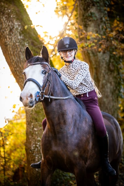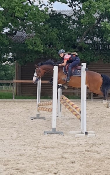 Zu verkaufen – Kaïpie Blue de Noval, PFS-Stute, geboren 2020 Kaïpie Blue de Noval ist eine „Selbstgezogene“ Ponystute, die in unserem Zuchtbetrieb mit viel Sorgfalt geboren und aufgezogen wurde. Sie ist eine Tochter des charismatischen Blue Tinka Tilia und teilt dessen Eleganz, Energie und beeindruckende Präsenz – man kann sie kaum übersehen. Kaïpie ist im Rhythmus unserer Familie aufgewachsen und hat eine enge Bindung zu unserer Tochter, die sie im Alter von 10 Jahren vollständig eingeritten hat. Somit ist sie ein zuverlässiges Kinderpony, respektvoll, geduldig und bereits an eine sanfte, konsequente Arbeit gewöhnt. Mit einem phänomenalen Springvermögen scheut sie vor nichts zurück, hält immer ihren Schwung und ihre Motivation auf hohem Niveau. Derzeit fehlerfrei bis 80 cm, macht sie stetige Fortschritte. Da wir ihr Zeit gegeben haben, sich in Ruhe zu entwickeln, ist sie heute bereit, mit einem ambitionierten jungen Reiter zu wachsen, der ihr volles Potenzial auf den Turnierplätzen entfalten kann. Kaïpie lebt tagsüber auf der Weide (gemeinsam mit anderen Pferden, Ponys und sogar einigen Kühen) und übernachtet im Stall. Sie reist problemlos, lässt sich problemlos scheren und vom Hufschmied beschlagen. Im Gelände zeigt sie sich offen, dynamisch und sicher, egal ob allein oder in der Gruppe – mit deutlicher Vorliebe für die Spitze des Zuges! Kaïpie ist eine Ponystute mit großem Herz, liebenswert und engagiert, die wir mit Freude an ein neues Team abgeben, das ihre schöne Energie und ihr vielversprechendes Zukunftspotenzial zu schätzen weiß.