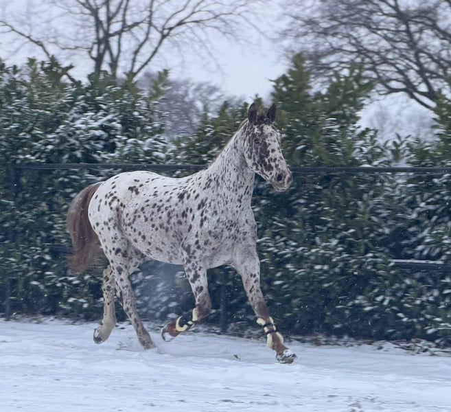 ✨ Te koop: Prachtige 4-jarige Appaloosa – ca. 1.63 m ✨ Deze knappe 4-jarige Appaloosa van circa 1.63 m is een echte eyecatcher 🤍🐎 Hij/zij wordt op dit moment rustig en correct in kennis gebracht met het longeren en het ruitergewicht, wat hij braaf en nuchter oppakt 💪 Het paard staat op twee ijzers 🧲 en is braaf bij de hoefsmid 👞. Ook laden en vervoeren op de trailer gaat probleemloos 🚛✨ In de omgang is hij sociaal en gedraagt zich netjes in een gemengde kudde 🐴🐴 Een jong paard met een fijne instelling en veel potentie 🌟 Perfect voor iemand die op zoek is naar een leuk toekomstpaard om verder op te leiden 🤍 📩 Interesse of vragen? Neem gerust contact op!