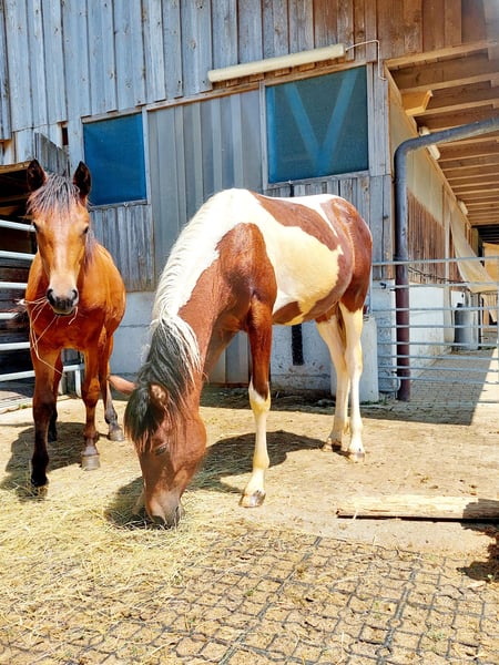 Arielle ist am 19.8.2024 gebohren. Ihre Mutter ist ein Freiberger und der Vatter ein Bosnisches Gebirgspferd. Arielle wird bestimmt nicht all zu gross wenn Sie ausgewachsen ist. Sie ist Halfterführig und mit dem Hufpfleger hat Sie sich auch schon ,,fast" angefreundet. Arielle ist neugierig und sehr lieb im Umngang. Sie steht aktuell in einer gemischten Gruppe vom Fohlen bis zur Rentnerin.