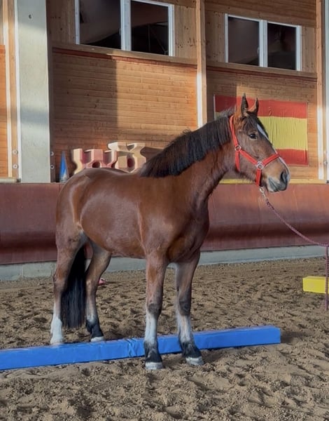 Traumpferd gesucht? Sehr liebe und unkomplizierte Freibergerstute Zum Verkauf steht diese wunderschöne braune Freibergerstute, 3 Jahre alt, ca. 1,56 m groß, ein echtes Verlasspferd mit einem goldenen Charakter. Sie ist sehr brav, rittig, anständig und absolut unkompliziert im Umgang. Ein Pferd, das man einfach gern um sich hat. Die Stute ist im Herdenverband aufgewachsen, dadurch bestens sozialisiert, freundlich und respektvoll mit Menschen und ihren Artgenossen. Auch im Alltag zeigt sie sich durchweg zuverlässig: schmiedefromm, verladefromm, longiert und bereits vom Profi, Pferde-und altersgerecht in der Basis geritten. Zusätzlich kennt sie Elemente aus dem Gelassenheitsparcours und nimmt neue Reize ruhig und gelassen an. Besonders schön: Sie war sogar schon im Gelände, in Begleitung Erwachsener mit einem 10-jährigen Mädchen und blieb dabei sehr brav und anständig. Damit bringt sie beste Voraussetzungen für ein zukünftiges Freizeit- und Familienpferd mit. Sie ist sowohl Offenstall als auch Box mit Paddock gewöhnt und liebt die Beschäftigung mit „ihrem“ Menschen. Sie ist aufmerksam, kooperativ und besitzt ein großes Herz. - Volle Papiere mit Abstammung - ! Aktuelles tierärztliches Gesundheitszeugnis ohne Befund ! - Top für zukünftige schöne Ausritte Diese Stute ist ein Traumpferd in jeder Hinsicht. Ein Pferd zum Liebhaben, Vertrauen und gemeinsam Wachsen. Ein echtes Herzenspferd, das man nicht so leicht wieder findet. Bei ernsthaftem Interesse freue ich mich über ihre Nachricht. Reitvideos können gerne verschickt werden. Für einen Besuchstermin berechnen wir 40 € die beim Kauf des Pferdes selbstverständlich erstattet werden. Hierfür bitten wir Sie um Verständnis. TEL: 01709343872