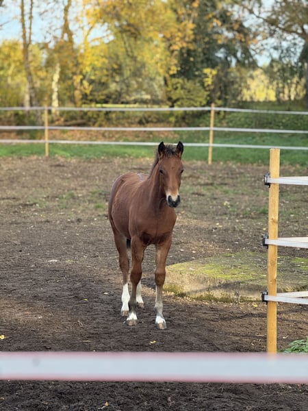 Ich biete einen coolen entspannten Freibergerhengstfohlen an. Charmeur ist am 010.05.2025 geboren. Er kennt Anhänger fahren und ein Schmied. Er ist regelmäßig entwurmt. Er steht mit einem stutfohlen und deren mütter zusammen. Es besteht auch die Möglichkeit das er länger bei mir bleibt. Er könnte ab Januar in sein zu Hause ziehen