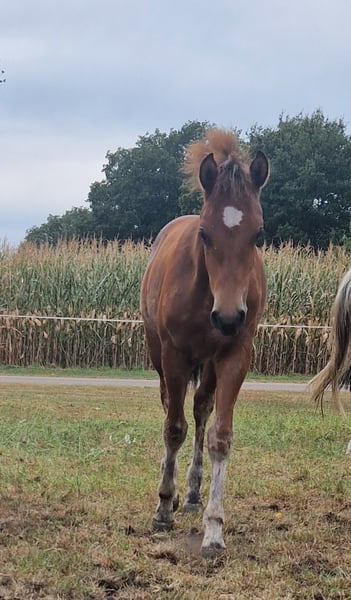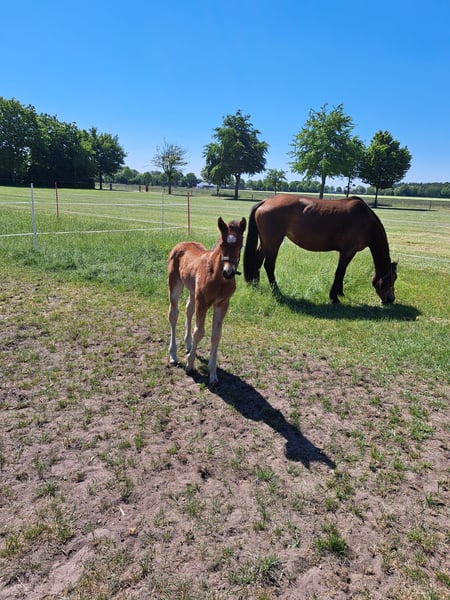 Wir bieten ein vielversprechendes Freiberger Hengstfohlen an. Geboren am 27. April 2025, zeigt sich dieses junge Pferd bereits jetzt als besonders lieb, aufgeschlossen und absolut unerschrocken – ein echter Schatz im täglichen Umgang! ✨ Eckdaten: Rasse: Freiberger Geschlecht: Hengst Geburtsdatum: 27.04.2025 Farbe: Braun Erwartetes Stockmaß: ca. 155 cm Vater: In den Niederlanden in der Dressur Klasse Z platziert – leistungsstark, rittig und mit tollem Charakter. Mutter: Eine echte Allrounderin – wird vielseitig eingesetzt, ob unter dem Sattel, vor der Kutsche oder in der Therapiearbeit – absolut zuverlässig und nervenstark. Zusehen ist sie auf den letzten drei Bildern. Charakter: Dieses Fohlen überzeugt mit einem klaren Kopf, freundlichem Wesen und einer tollen Grundausbildung in der Fohlenschule. Perfekt geeignet für Sport, Freizeit oder als zukünftiger Kutsch- und Reitpartner. Standort: 49847 Itterbeck Bei Interesse freuen wir uns über eine Nachricht. Besichtigung jederzeit nach Absprache möglich!