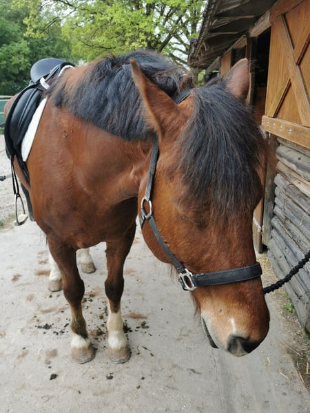 Angeboten wird ein Freiberger Wallach mit toller Farbgebung. Helix haben wir vor ca. 2 Jahren direkt aus der Schweiz bezogen. Leider haben sich die privaten Umstände von uns verändert, sodass wir uns dazu entscheiden mussten Helix zu verkaufen. Er ist ranghoch und weiß das auch zu verteidigen. Sind die Ränge dann klar geregelt, ist es eine harmonische Gruppe. Helix geht unglaublich gern ins Gelände, alleine ist aktuell nicht seine Stärke, mit etwas Training sollte das aber machbar sein. Für Stangenarbeit und kleinere Sprünge lässt er sich gut begeistern. Longieren und frei Rennen kennt er und macht das sehr gut mit. Bei seinen Vorbesitzern ist er als Kutschpferd und Rückepferd im Einsatz gewesen und das mit Begeisterung. Ein-, Zwei- und Mehrspännig. Dressur läuft er sehr schön, man muss ihn hier aber motivieren. Er ist immer klar im Kopf, hört gut auf stimme und läuft schön über das Genick. Er ist sehr intelligent und lernt schnell. Er ist unglaublich verschmust und anhänglich. Macht Quatsch mit und ist in den meisten Situationen sehr cool. Er schnaubt laut auf, wenn er was gruselig findet. Er ist kein Anfängerpferd, da er seinen Reiter testet. Auch Freudebuckler ist mal drin, jedoch immer händelbar. Ein Mädchen mit 14 Jahren ist ihn geritten auch im Gelände, das war kein Problem. Helix ist ein toller und treuer Partner, der nicht täglich gearbeitet werden muss. Verkehrssicher, Tierarzt- und Verladefromm. Er kennt robuste Stallhaltung. Bei den Vorbesitzern war er 4fach beschlagen. Wir haben die Eisen runter, er benötigt im Sommer jedoch vorne Hufschuhe (auch auf der Koppel). Evtl. wäre es sinnvoll ihn vorne wieder zu beschlagen. Beim Zahnarzt war er auch und hat hier ein Intervall von 1,5 Jahren. Helix ist ein süßer, frecher Kerl. Man hat viel Freude mit ihm. Wir wünschen ihm ein Zuhause, bei dem er täglich Koppelgang hat. Eine Bezugsperson die ihm die Aufmerksamkeit schenkt, die er verdient. Ihn betütelt, mit ihm arbeitet und einfach Freude an seiner Art hat. Er soll kein Wanderpokal werden. Deswegen möchten wir vorab Informationen haben, wo er wohnen wird, wie die Haltungsbedingungen sind und welche Anforderungen an ihn gestellt werden. Es ist kein Zwangsverkauf und wir geben ihn nur her, wenn wirklich alles passt. Persönlich wie auch Haltungsbedingt. Er wird mit Zubehör abgegeben - Preis wird nicht reduziert, Zubehör ist dabei ohne Diskussionen. Vielseitigkeitssattel, Trense, Hufschuhe, Halfter und Satteldecken. Feldtest Exterieur: 7/7/7 Fahren: 8,14 Reiten: 8,40 Wenn Helix Interesse geweckt hat, gerne Kontakt aufnehmen. Für Probereiten steht keine Halle zur Verfügung, je nach Wetterbedingungen ist ein Reiten nicht möglich.