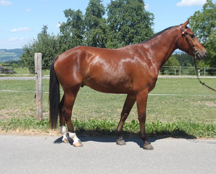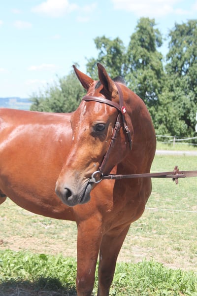 Freiberger Wallach, bald 4 jährig, 159 cm Lieber unerschrockener Wallach, welcher sehr viel im Gelände geritten wird - auch alleine. Dadurch absolut verkehrssicher und nicht schreckhaft. Er wird auch für begleitete Ausritte mit Jugendlichen und Erwachsenen eingesetzt - hier zeigt er sich sehr unkompliziert und anpassungsfähig. Altersentsprechend wird er an der Longe sowie auf dem Sandplatz gearbeitet. Auch 1 und 2 spännig gefahren - mit Feldtest. Im Umgang, beim Hufschmied, zum verladen ist er schon sehr routiniert und abgeklärt. Er lebt auf einem Landwirtschaftsbetrieb mit grossen Maschinen, Traktoren, spielenden Kindern. Der Wallach ist sehr sozial und kann problemlos in eine Gruppe integriert werden, kennt aber auch Einzelhaltung. Selbstverständlich darf er jederzeit besichtigt, kennengelernt und ausprobiert werden.