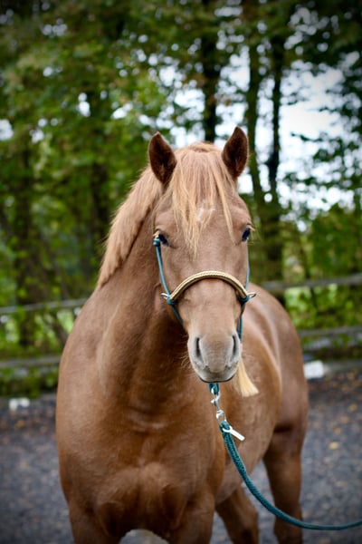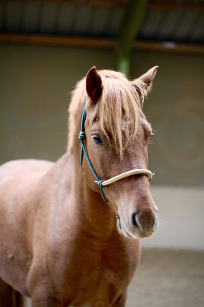 Heston Un Haflinger de 1,57 m, doté d’un caractère très stable et amical. Heston est un cheval avec un fort « Will to Please », il fait toujours de son mieux pour satisfaire tout le monde et apprend très rapidement. Il montre de la joie dans le travail, que ce soit en dressage, en longe, en travail à pied, etc., et aime beaucoup être en extérieur (seul, en groupe ou avec des chiens). On peut aussi le monter après une longue pause sans souci. Nous avons accueilli Heston en mars 2024, directement de Suisse. Depuis, il ne nous a jamais déçus sur le plan du caractère. Toujours en bonne santé, sociable et amical, absolument facile avec le maréchal-ferrant et lors du chargement, câlin, curieux et désireux d’apprendre, et parfaitement lucide. En tant que véritable cheval polyvalent, il convient aussi bien aux débutants qu’à un usage thérapeutique. Il pardonne les erreurs du cavalier et, lorsqu’il trouve quelque chose d’effrayant, il préfère s’arrêter et l’observer avec curiosité plutôt que de s’emballer ou de s’affoler. Un cheval de confiance jusqu’au bout des sabots. Son examen vétérinaire préliminaire s’est révélé conforme à nos attentes, sans aucune anomalie. Depuis son arrivée chez nous, il marche pieds nus, mais il connaît aussi les fers ou les chaussures. À seulement 4,5 ans, il est déjà le compagnon idéal, avec un potentiel encore très prometteur. Pour éviter toute concurrence avec le tourisme équestre, nous devons malheureusement facturer une petite participation pour la séance d’essai. Bien entendu, cette somme sera déduite en cas d’achat.