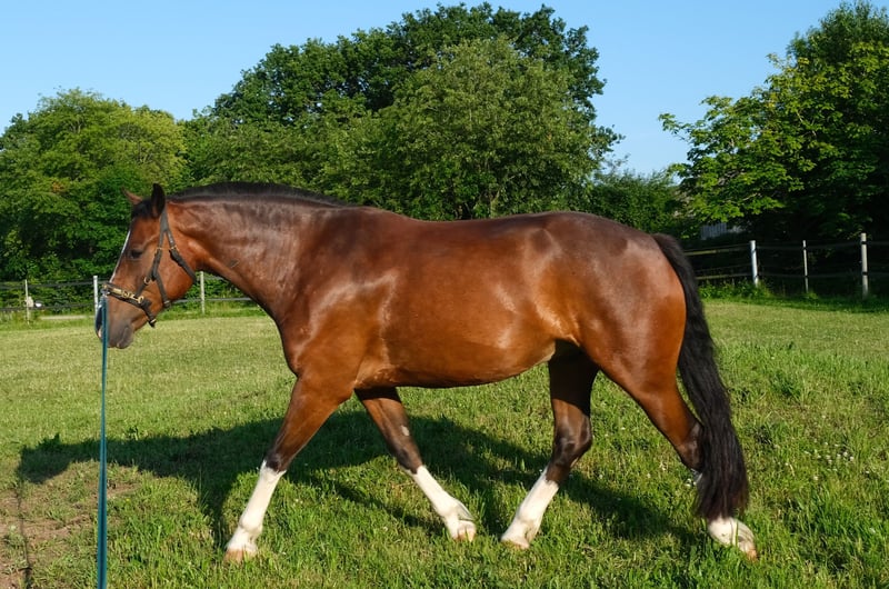 Namiro is a true eye-catcher and a real gem with an excellent conformation and beautiful natural gaits. He is very well ridden and has been professionally trained. A genuine all-rounder, just as you would imagine a Freiberger to be. He loves his life in the herd paddock with other geldings, with whom he can also enjoy some playtime. Within the group, he has a rather balancing character and tends to avoid conflicts. With us, he has only been driven single harness. However, he feels more comfortable in a pair. He can also handle small jumps. He is soft in the mouth and already performs some lateral movements. He is easy to load, well-behaved at the blacksmith, and cooperative with the veterinarian. Only in private, caring, and encouraging hands.