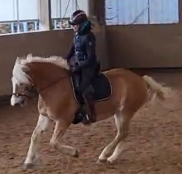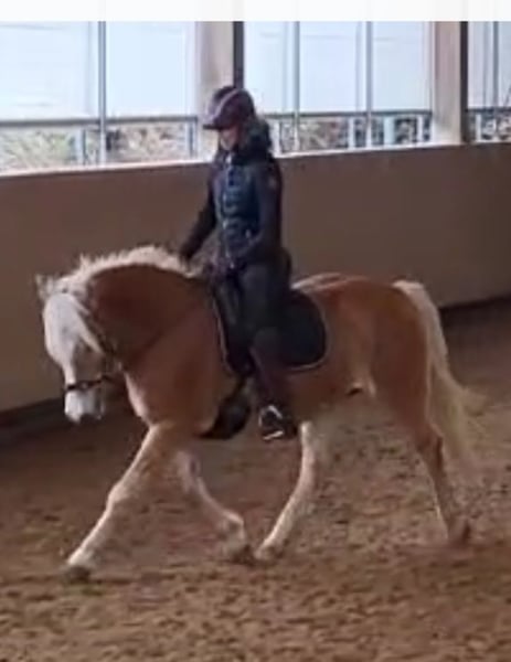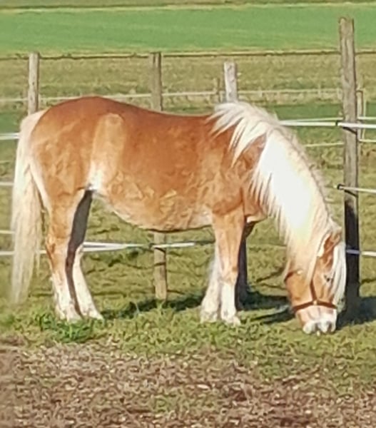 Verkaufe meine Reinzucht-Haflingerstute. Sie sollte meine "Stute fürs Leben" werden, aber leider habe ich festgestellt, dass die Chemie zwischen uns nicht stimmt. Sie hat sehr viel Go und da ich eine eher ängstliche Reiterin bin, finden wir leider nicht zueinander. Sie wird dieses Jahr 11 Jahre alt, ca. 147 cm groß und kompakt, weshalb sie auch größere Reiter gut abdeckt. Sie ist sehr aufmerksam und lernt gerne Neues, sie ist menschenbezogen, möchte ihrem Reiter gefallen und ist stets fleißig und motiviert. Gleichzeitig schätzt sie Ruhe und Weidegang zum Ausgleich. Im Winter zeigt sie sich besonders arbeitsfreudig und hat viel Energie. Ich habe sie in Thüringen gekauft. Sie war bis zu dem Zeitpunkt hauptsächlich Kutschpferd und nur ab und zu unter dem Sattel in der Gruppe im Gelände. Innerhalb von insgesamt 3 Monaten im Beritt (Englisch) hat sie gelernt, sensibel auf Zügel- und Schenkelhilfen zu reagieren. Sie läuft in allen 3 Gangarten im Viereck und im Gelände und ist dabei mit viel Go ausgestattet, aber immer händelbar und brav. Buckeln, Steigen oder Durchgehen hat sie zu keinem Zeitpunkt gezeigt. Sie kennt landwirtschaftliche Maschinen, Autos, Hunde, etc. Wir haben bisher nichts gefunden, wovor sie Angst hat. Auch an der Longe läuft sie brav. Anderen Pferden gegenüber ist sie stets freundlich und somit absolut herdentauglich. Im Beritt stand sie auf der Koppel in einer gemischten Herde von insgesamt 10 Pferden. Bei uns steht sie in einer Paddockbox mit direkten Koppelzugang. Sie ist schmiede- und verladefromm, gechipt, Tetanus geimpft und entwurmt. Sie läuft barhuf, keine Rehe, kein Ekzemer und auch sonst keinerlei gesundheitliche Probleme. Sie hatte bei ihrem Züchter ein Hengstfohlen und ist im Zuchtbuch 1 des Pferdestammɓuchs Weser-Ems e.V. eingetragen. Sie hat einen roten Equidenpass mit vollen Abstammungsnachweis. Vater: Anni Sam SG, Muttervater: Nelfried. Somit auch für Züchter interessant. Kurzbeschreibung: - brave Freizeitpartnerin - 2-spännig gefahren - gelände- und straßensicher - sehr sozial und unkompliziert mit anderen Pferden - schmiede- und verladefromm Sie ist eine ehrliche Seele und verdient einen Menschen, der sie genauso schätzt und liebt, wie sie ist. Sie wird nicht als Anfängerpferd oder Kinderpferd verkauft. Da sie eine Bezugsperson braucht, ist sie nicht für Reitschulen geeignet. Bei ernsthaftem Interesse können weitere Bilder, Videos und Abstammungsnachweis zugesandt werden. Ich freue mich auf Nachrichten!