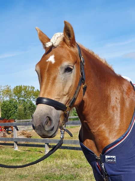 Wij zijn op zoek naar een liefdevol nieuw thuis voor onze 12-jarige Haflinger merrie. Vroni is volledig afstammingsgetrouw en van uitstekende afkomst. Ze is een zeer sportieve Haflinger, die onder het zadel zeer gemotiveerd is en plezier in haar werk toont. Vroni springt heel goed en geniet daar bijzonder van, maar ze is ook goed te rijden in de dressuur. Door haar nieuwsgierigheid leert ze snel, maar niet alleen de gewenste dingen. Ze heeft drie uitstekende basisgangen. In haar vorige omgeving is ze veelzijdig getraind, en deze afwisseling (grondwerk, springen, dressuur, longeren, buitenritten) zou ze ook in haar nieuwe thuis moeten blijven ervaren. Vroni kent kinderen, honden, water, tractoren en is in het terrein goed te hanteren en makkelijk in de omgang. Ze is niet bang, maar ook niet onverschrokken. Ze is geschikt voor recreatie- en wedstrijdruiters, maar moet wel verder uitgedaagd en gestimuleerd worden. Alleen een tot twee keer per week bewegen is niet genoeg voor haar. Ze wordt gehouden in een paddock met stal (24/7 weidegang met schuilstal), dus ze is ook sociaal in een kudde. Deze manier van houden zou ook wenselijk zijn voor haar nieuwe thuis. Ze is regelmatig gevaccineerd, ontwormd en haar tanden zijn ook regelmatig gecontroleerd. Momenteel is ze volledig voorzien van hoefijzers. Proefritten mogelijk tegen vergoeding.